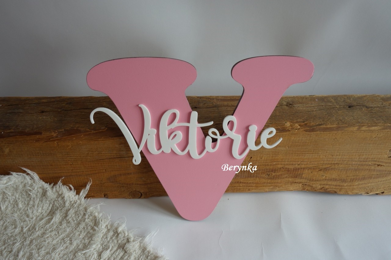 - jméno je vyřezané zvlášť a na písmenu je nalepené, dělám ho pouze v bílé barvě