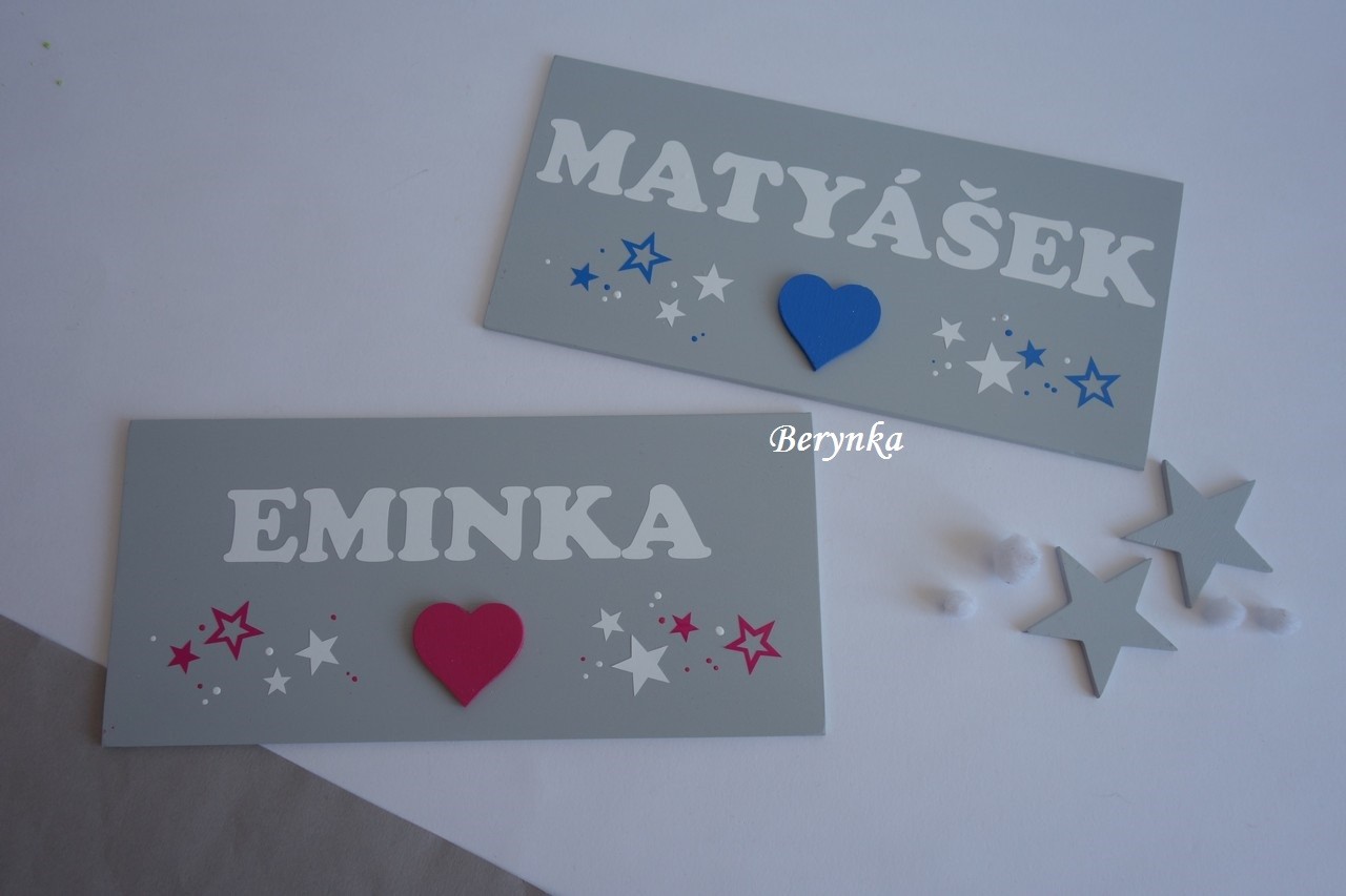 Jmenovky je možné udělat i v jiných barvách - více na detailních fotografiích.