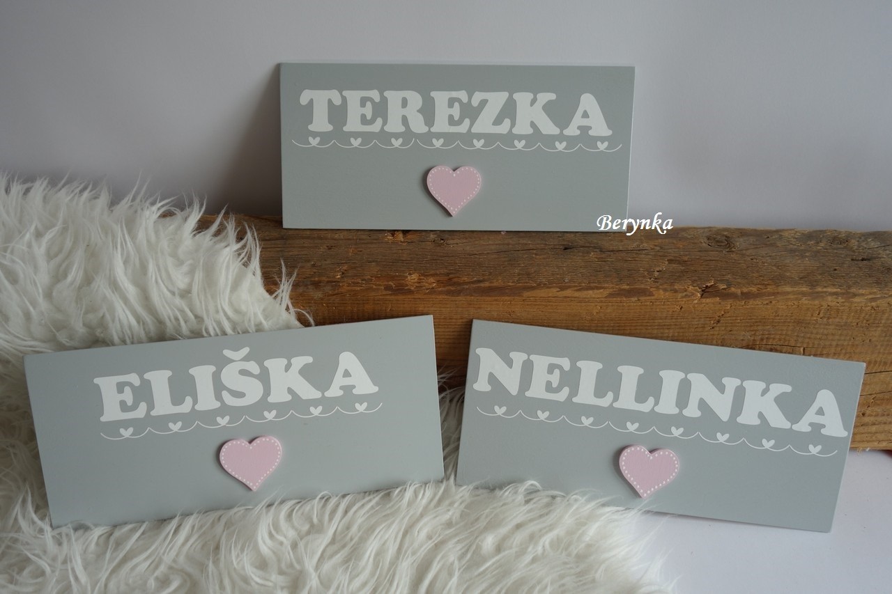 Dřevěné jmenovky můžou ozdobit dveře a stěny Vašich dětských pokojíčků.
