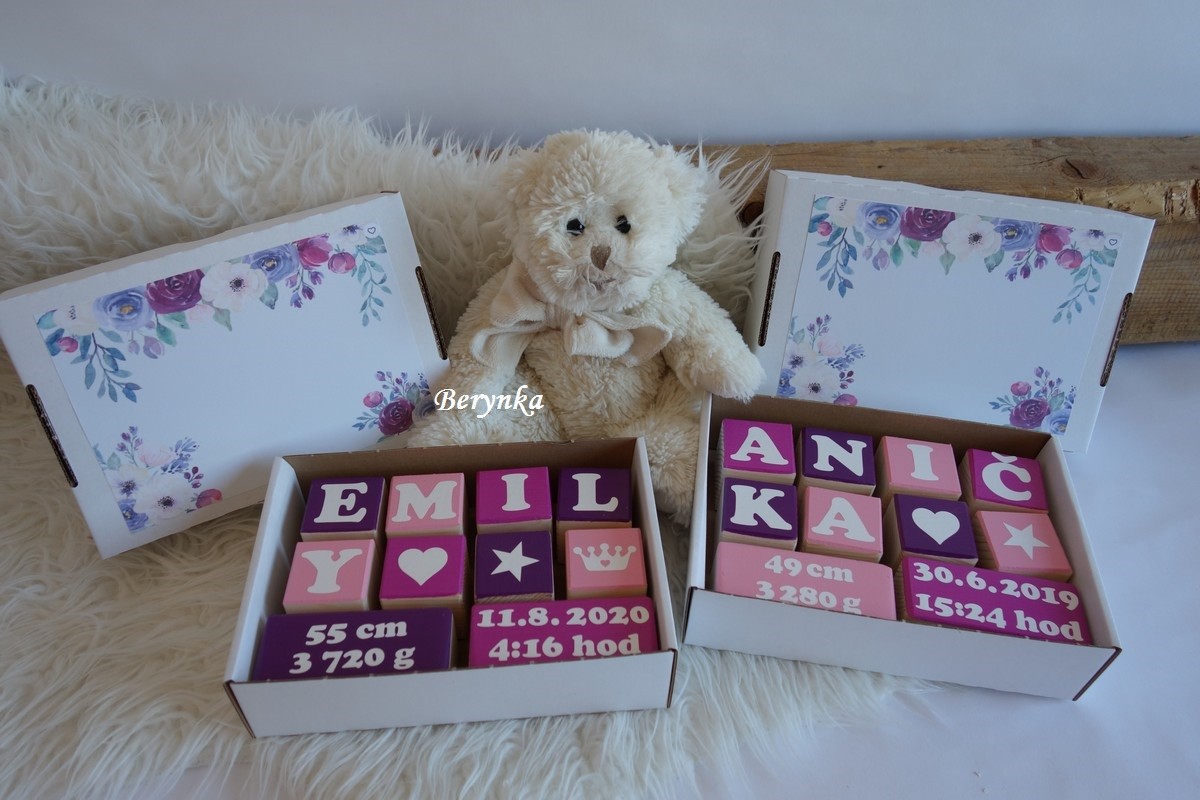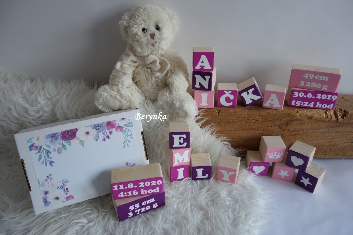 Dřevěná velká kostka s údaji o narození miminka