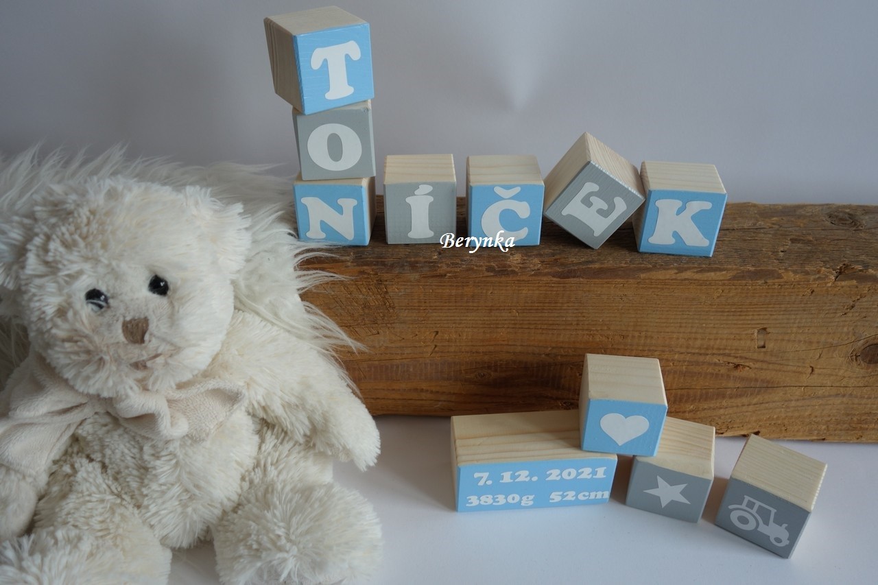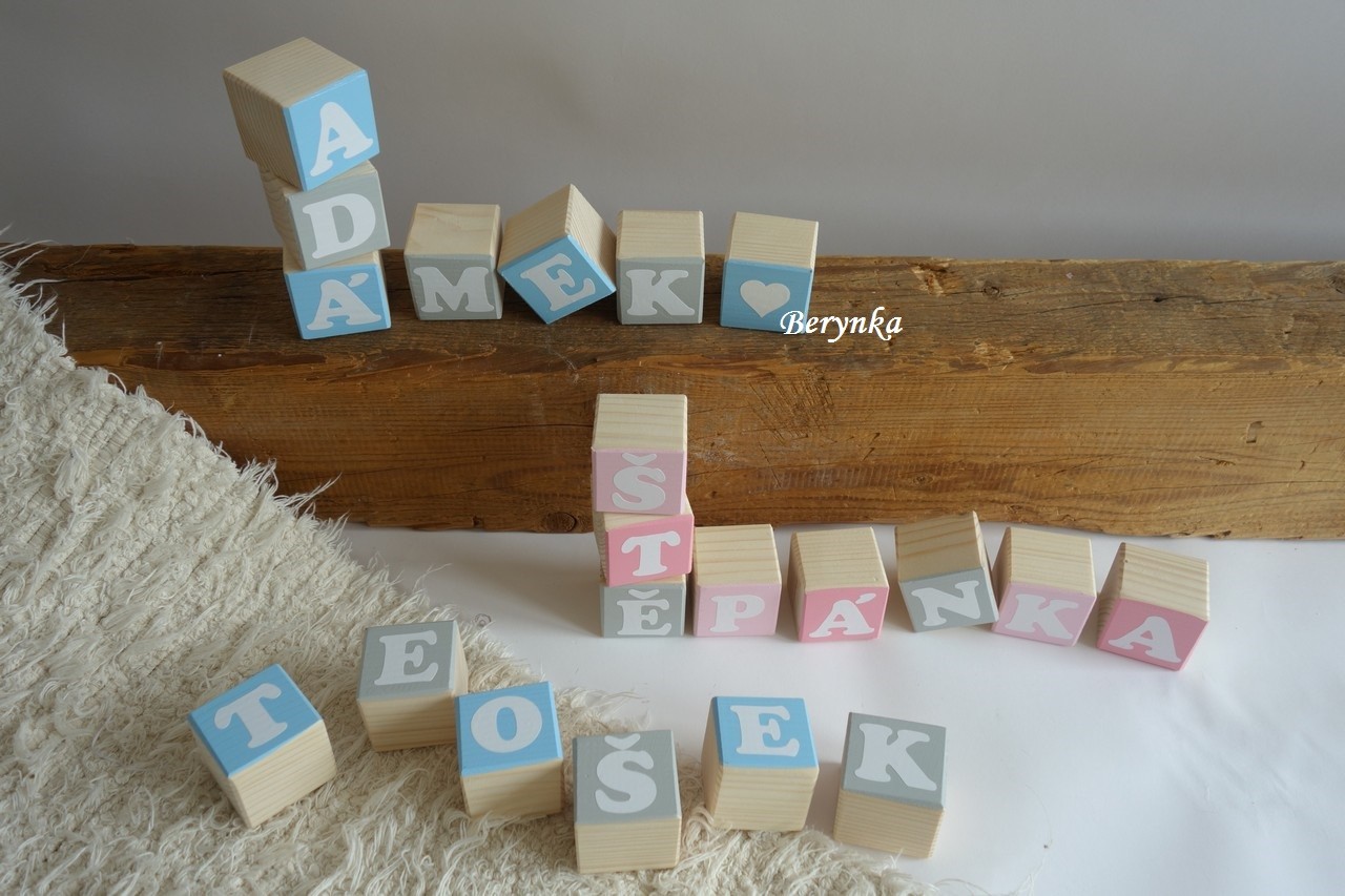 Dřevěné kostičky se jménem