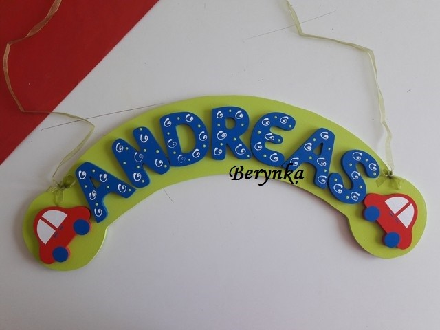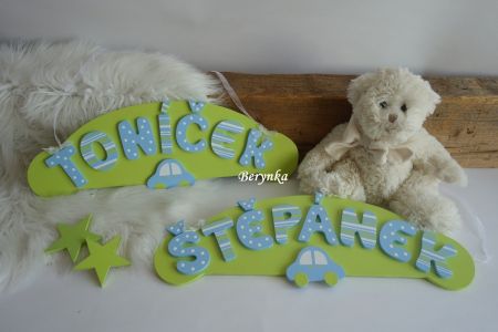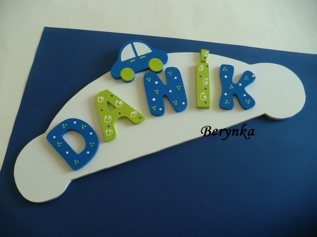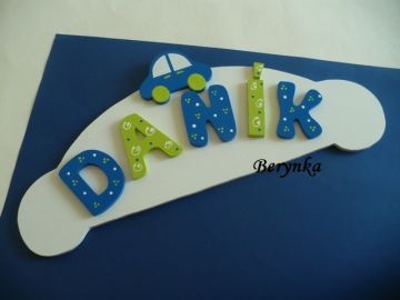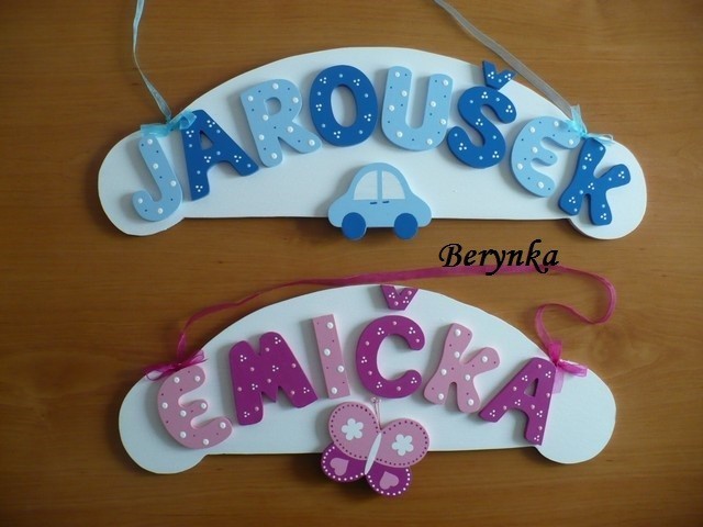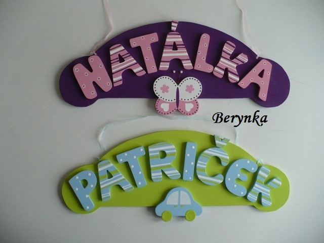 - jmenovka s písmenky je vyřezaná z překližky, ručně malovaná a zdobená, je přelakovaná - je možné jí snadno otírat