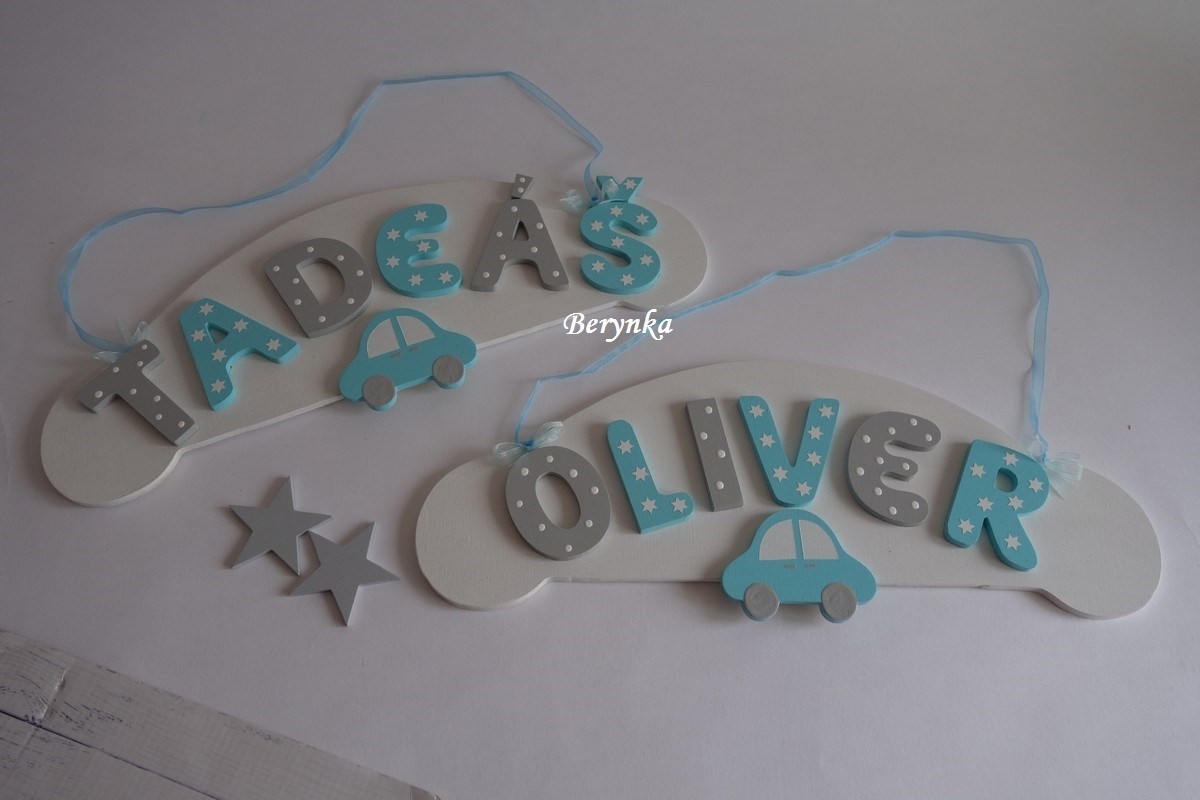Dřevěné jmenovky můžou ozdobit dveře a stěny Vašich dětských pokojíčků.