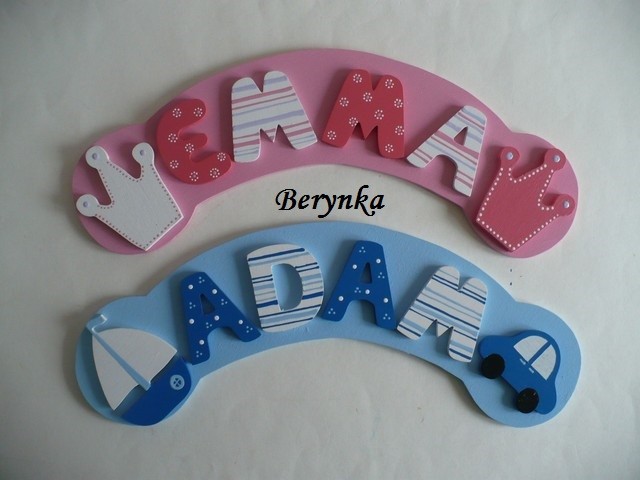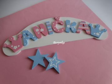 - jmenovka s písmenky je vyřezaná z překližky, ručně malovaná a zdobená, je přelakovaná - je možné jí snadno otírat