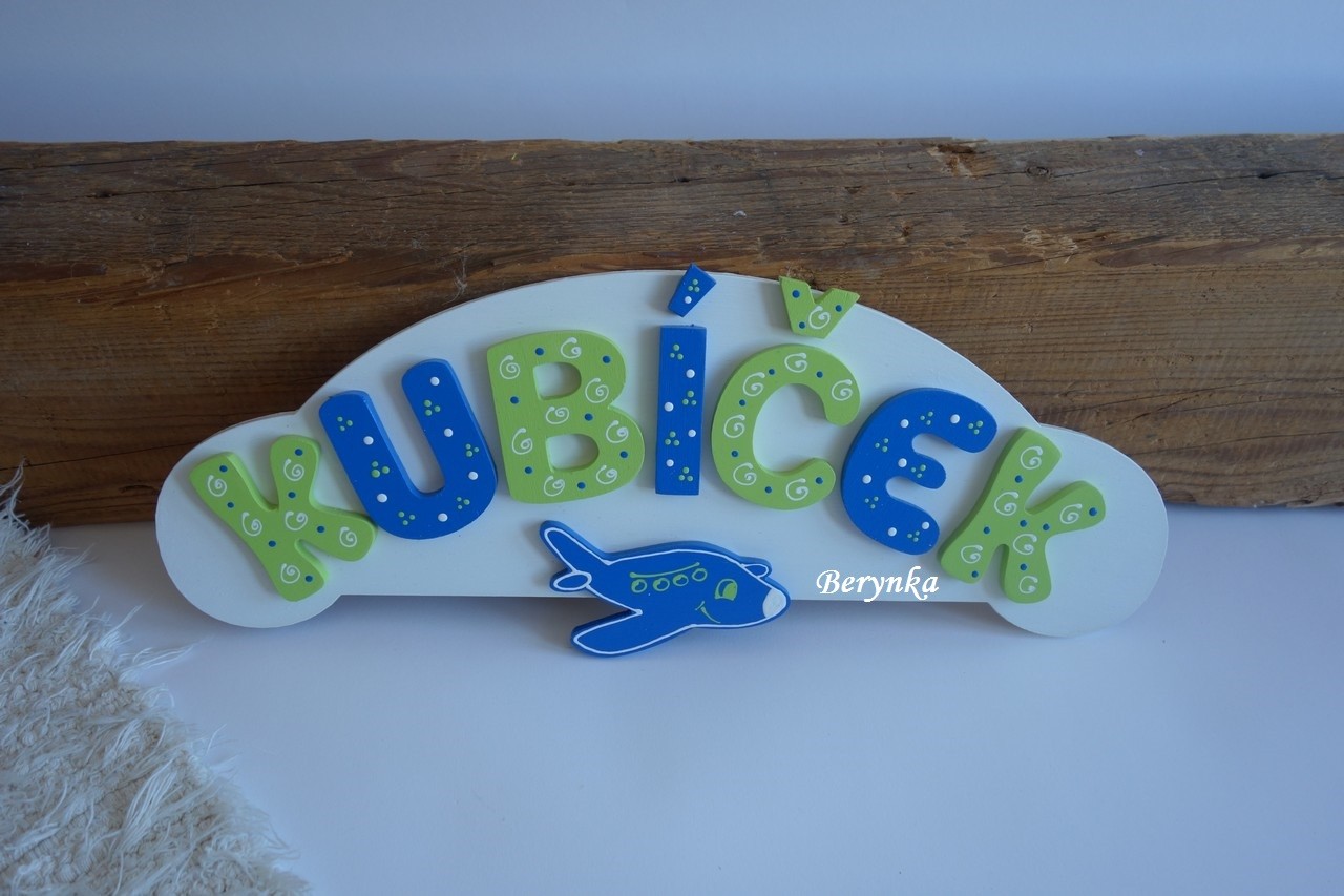 - jmenovka s písmenky je vyřezaná z překližky, ručně malovaná a zdobená, je přelakovaná - je možné jí snadno otírat