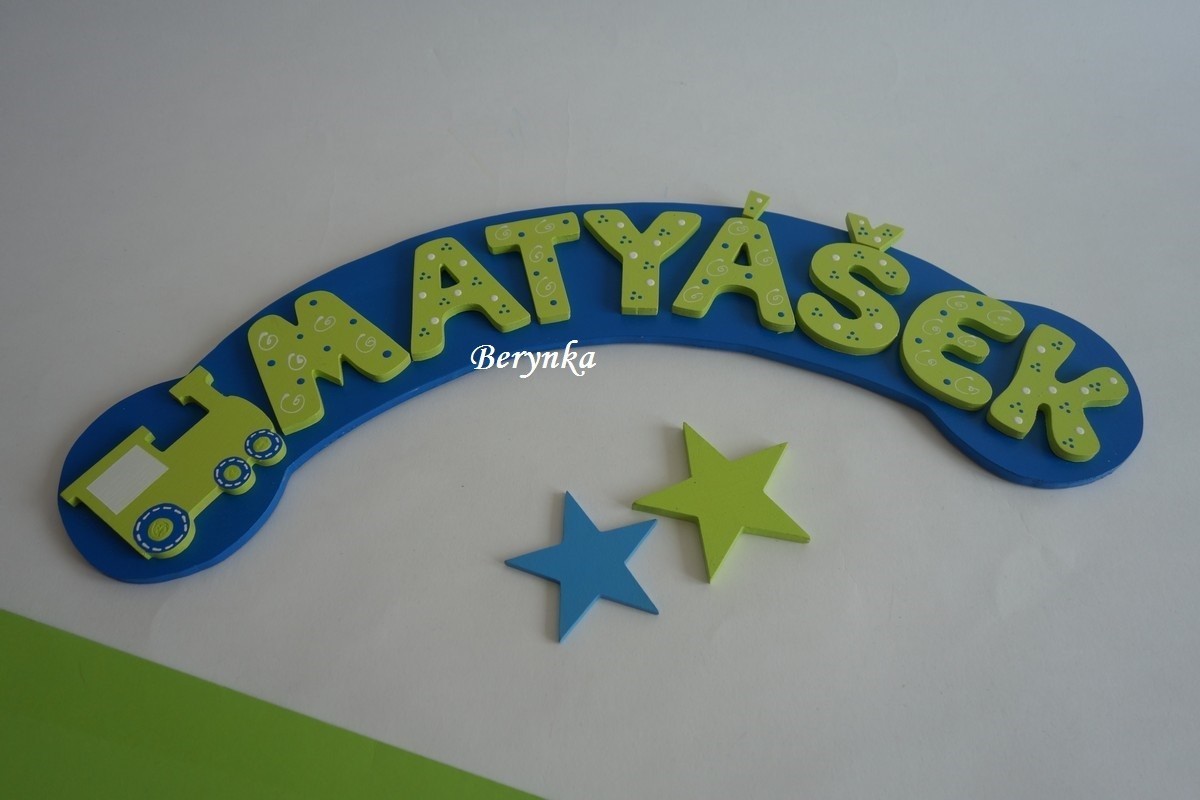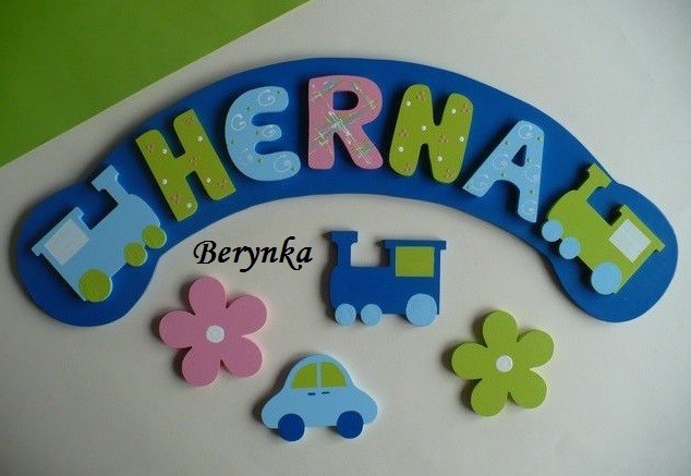 - jmenovka s písmenky je vyřezaná z překližky, ručně malovaná a zdobená, je přelakovaná - je možné jí snadno otírat