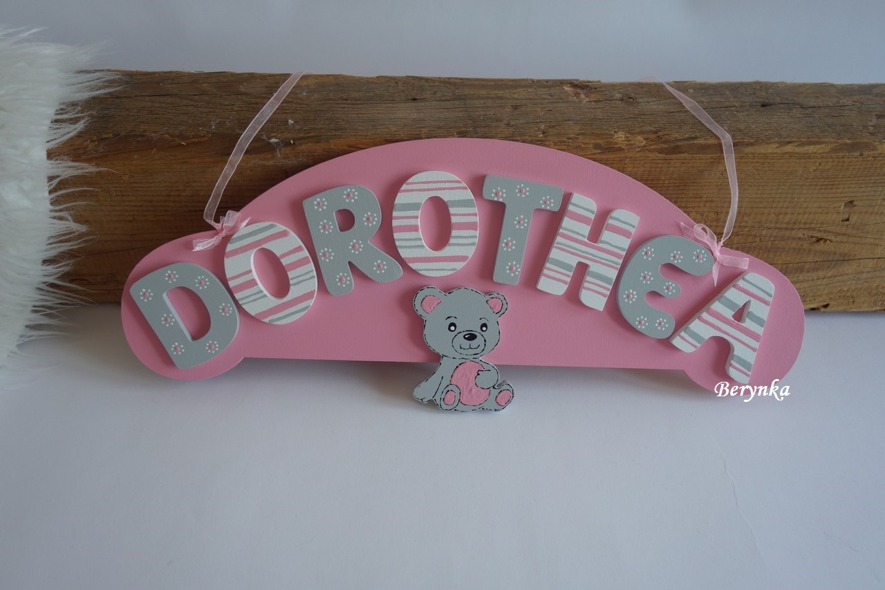 - jmenovka s písmenky je vyřezaná z překližky, ručně malovaná a zdobená, je přelakovaná - je možné jí snadno otírat