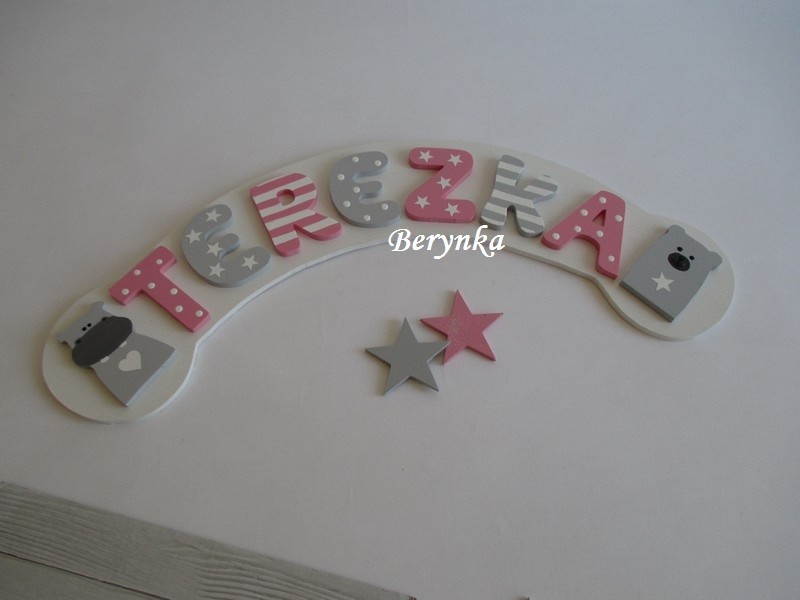 - jmenovka s písmenky je vyřezaná z překližky, ručně malovaná a zdobená, je přelakovaná - je možné jí snadno otírat