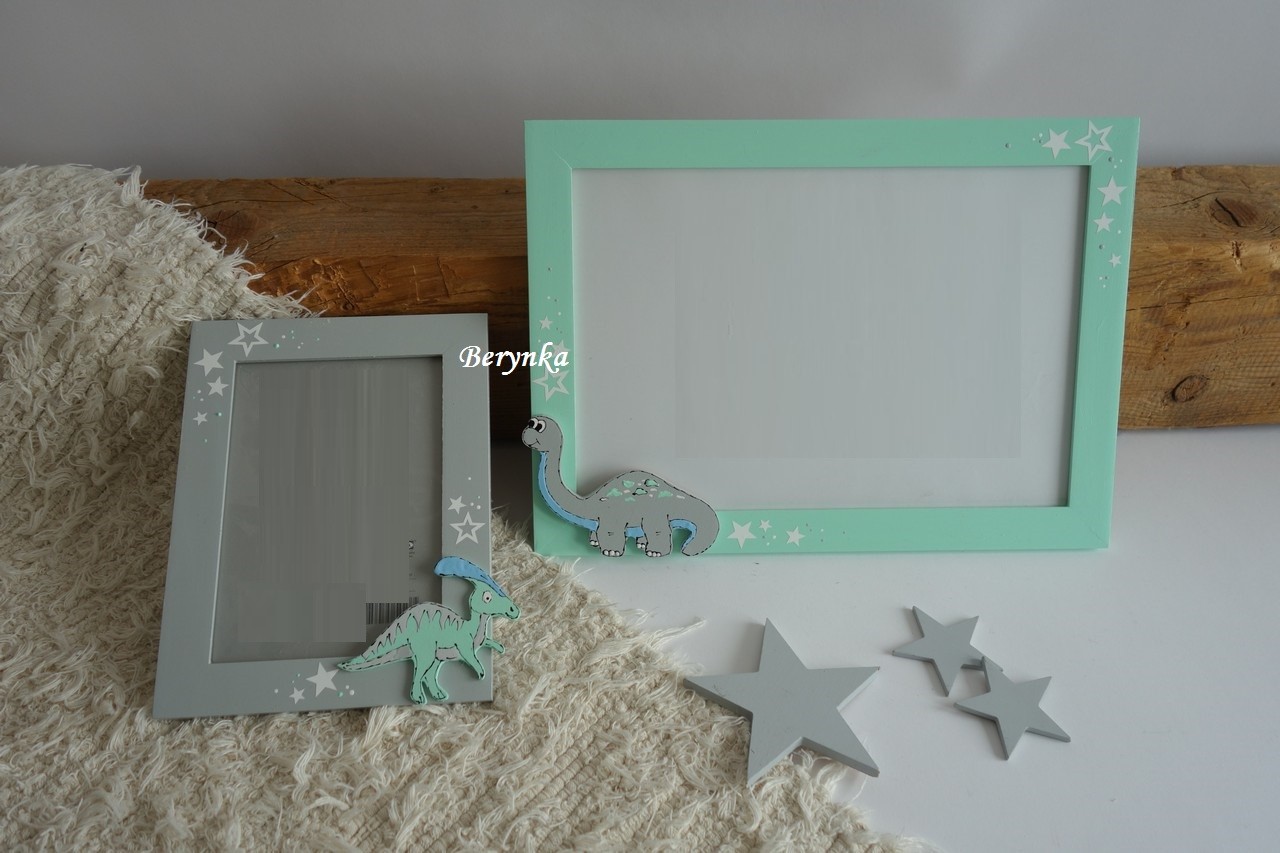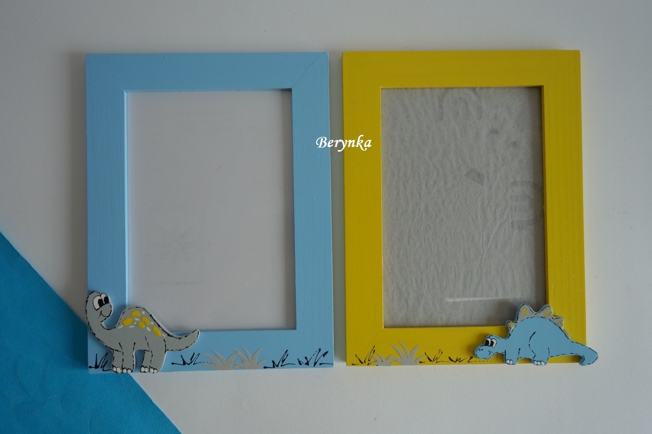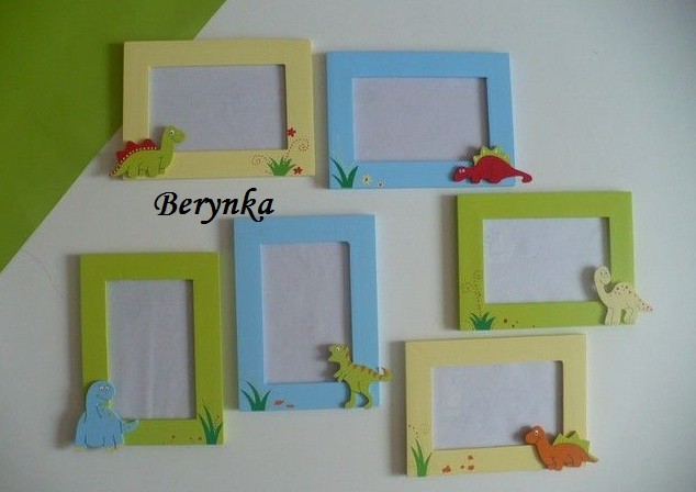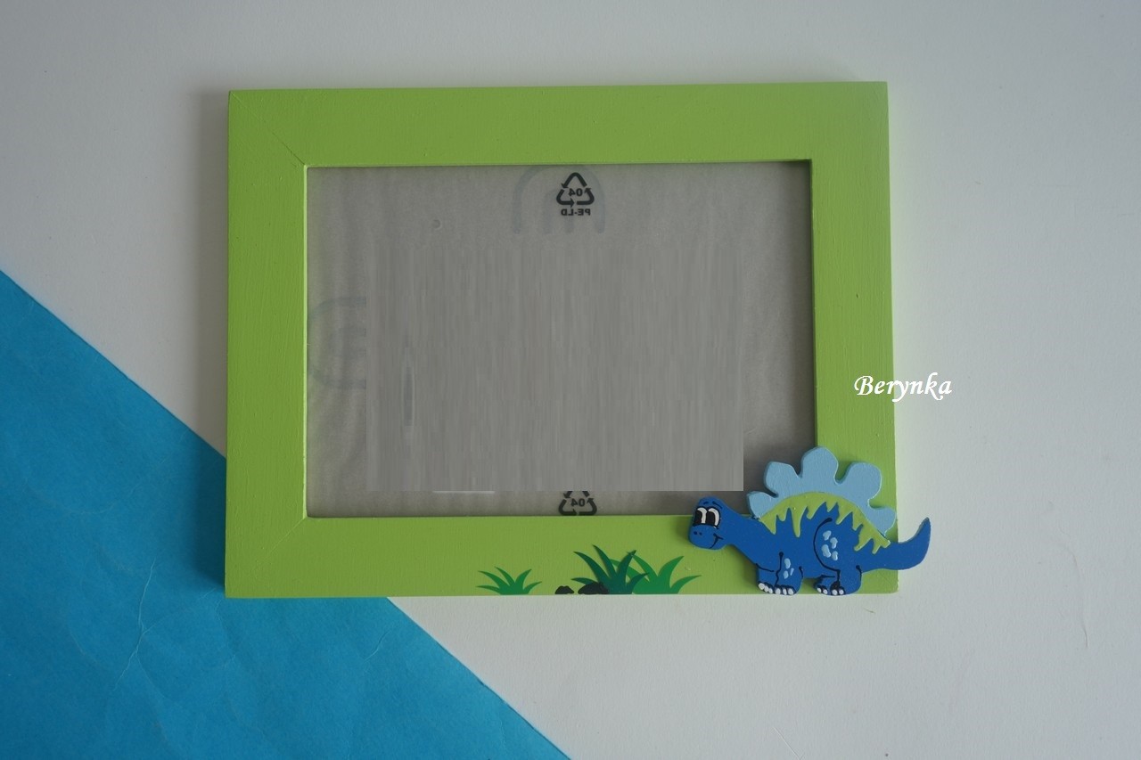 Dřevěný fotorámeček s dinosaury