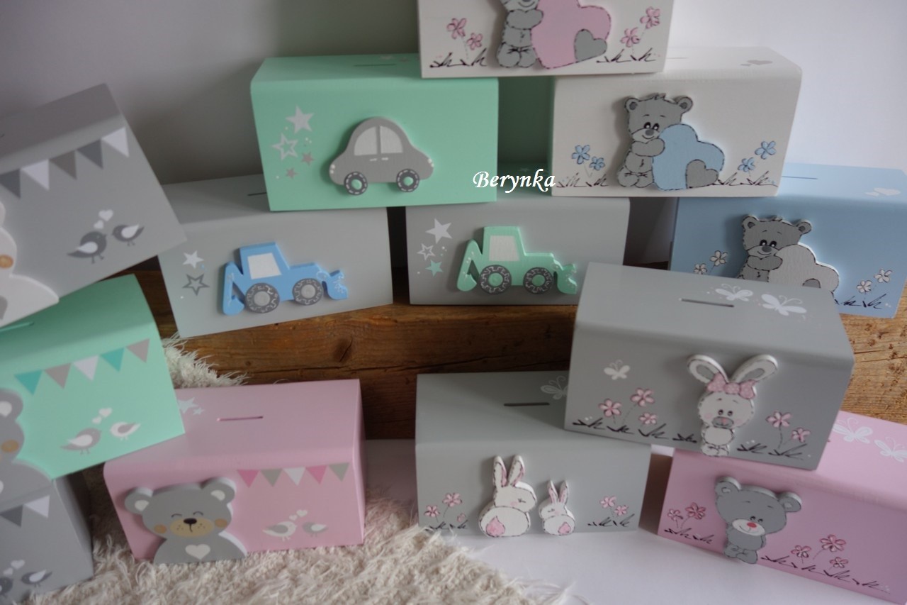 - pokladnička je ručně malovaná, zdobená a přelakovaná - je možné jí snadno otřít