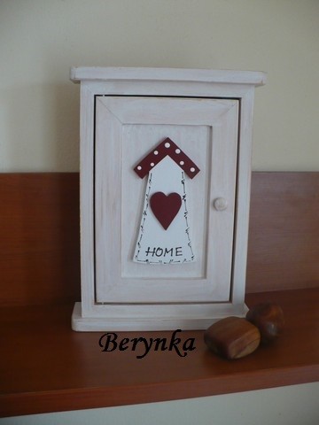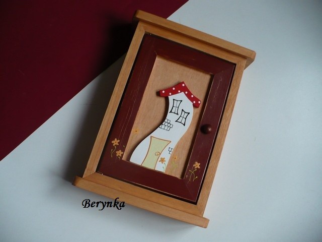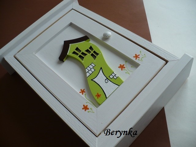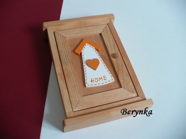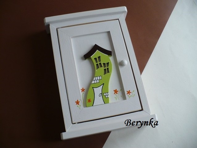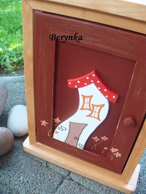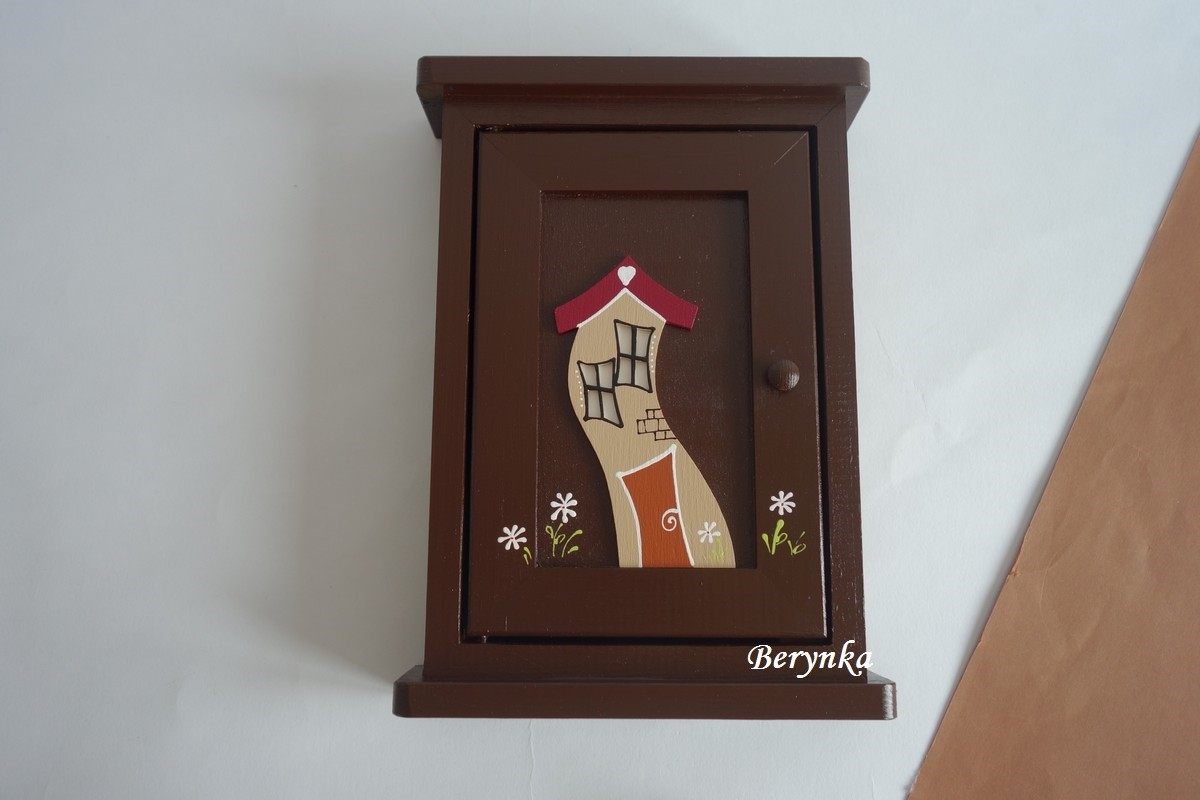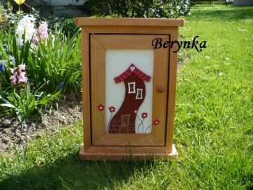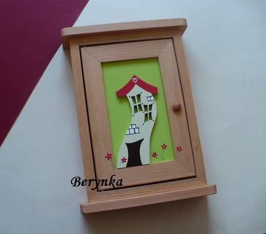 - domeček je ručně vyřezaný z překližky, namalovaný a na skříňce nalepený