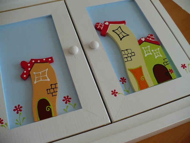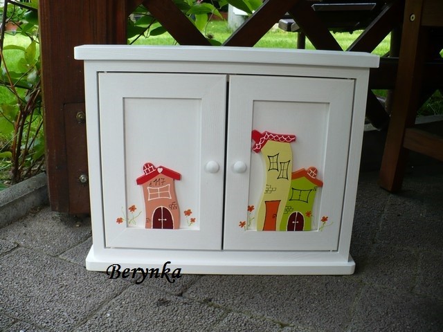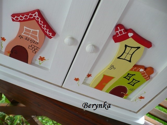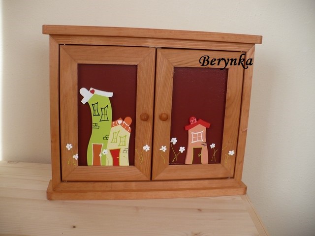 - domečky jsou ručně vyřezané z překližky a na skříňce nalepené