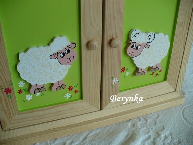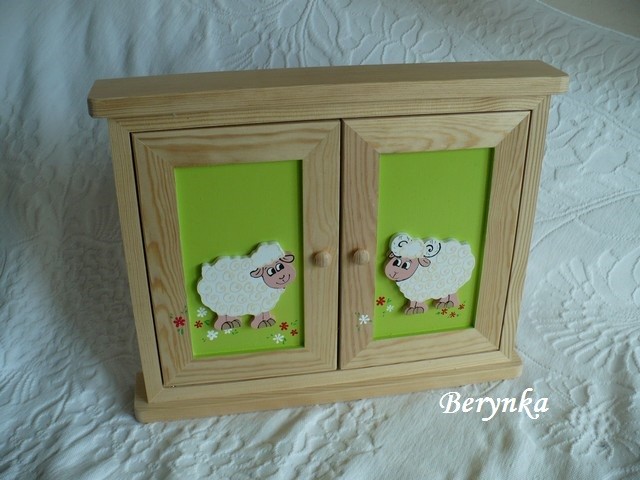 - ovečky jsou ručně vyřezané z překližky a na skříňce nalepené