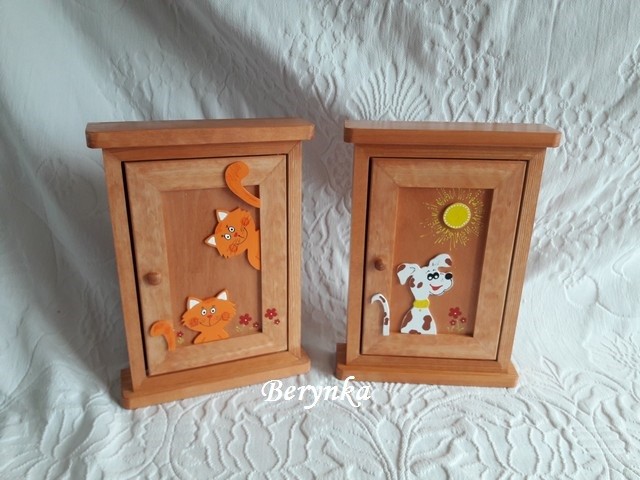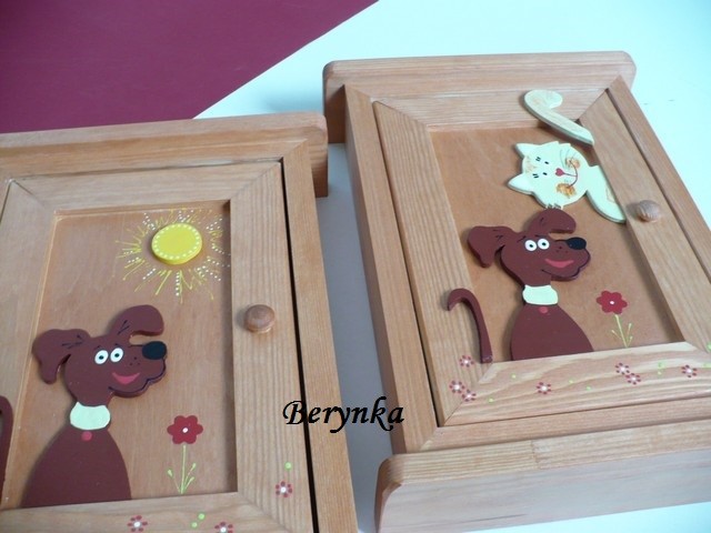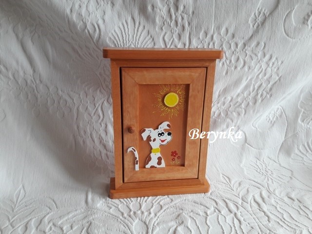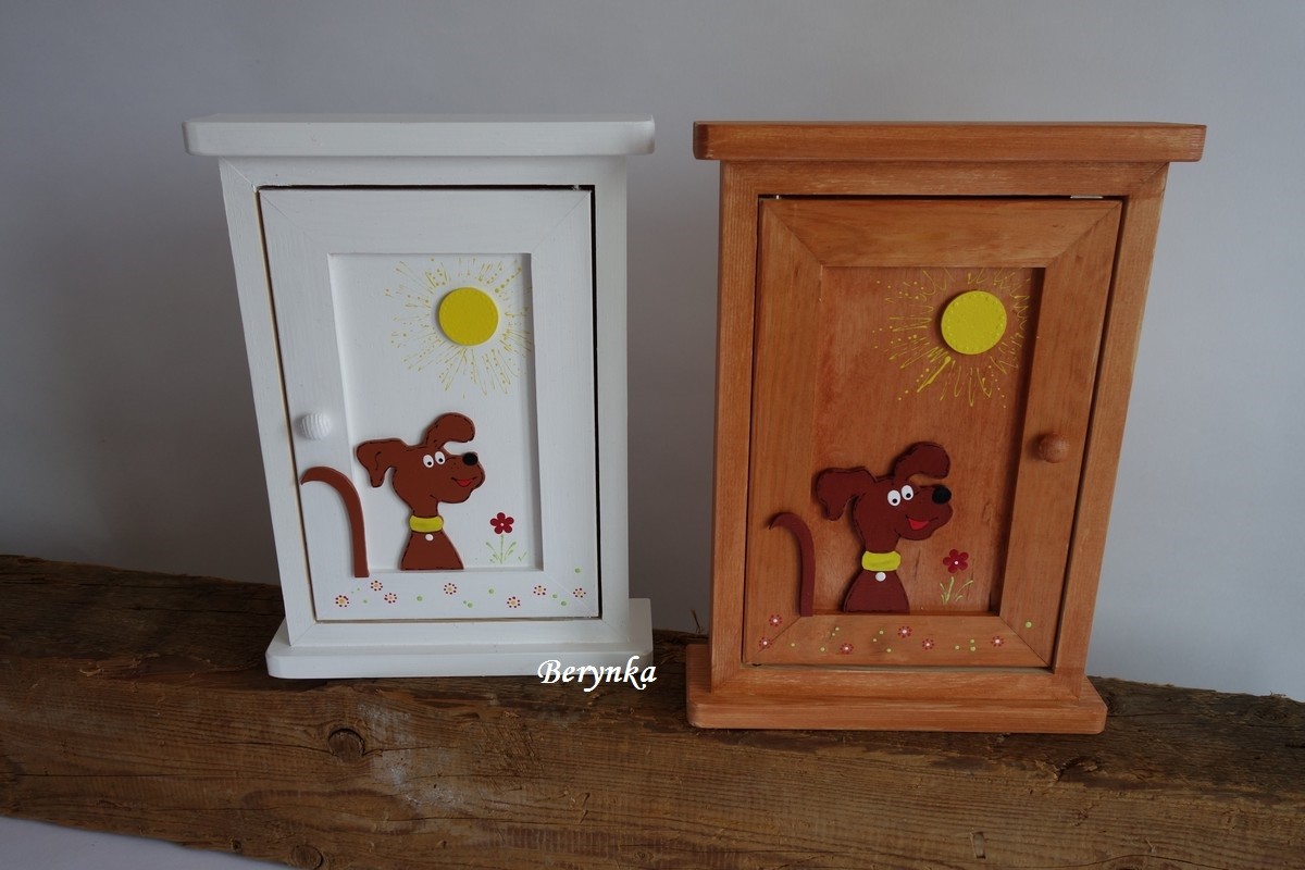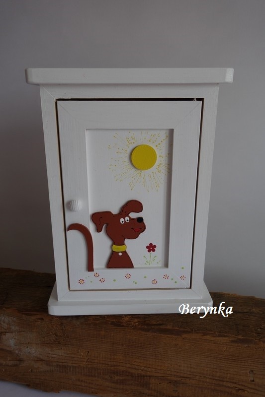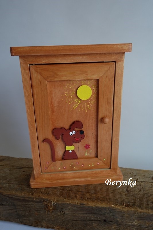- pejsek a sluníčko jsou ručně vyřezané z překližky a na skříňce nalepené
