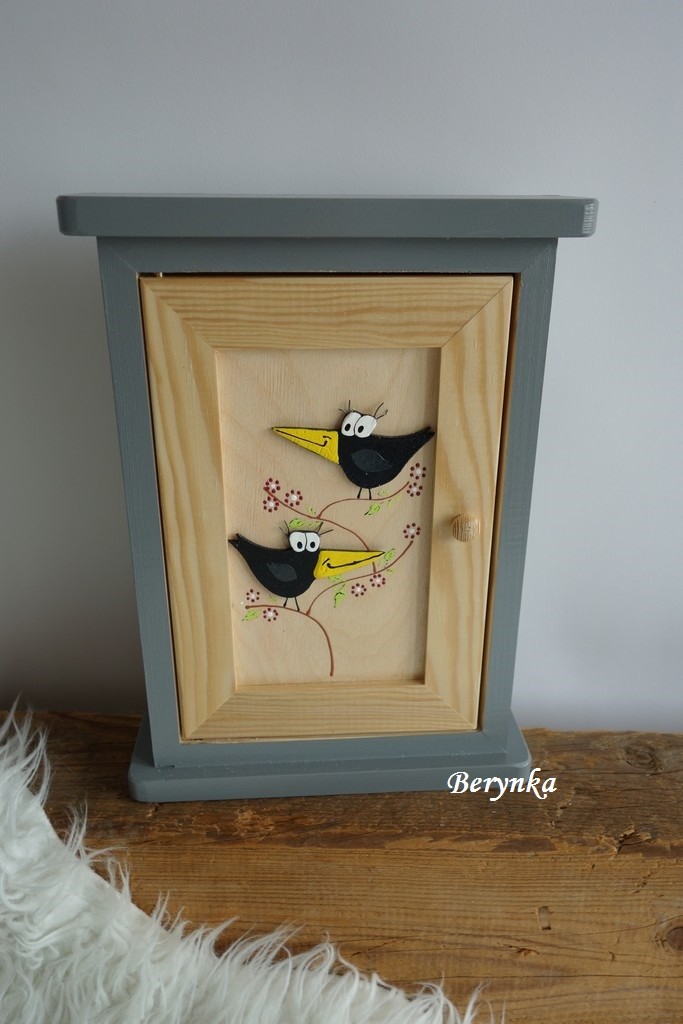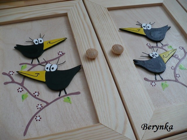 - ptáčci jsou ručně vyřezaní z překližky a na skříňce nalepení