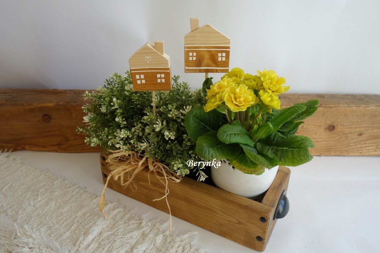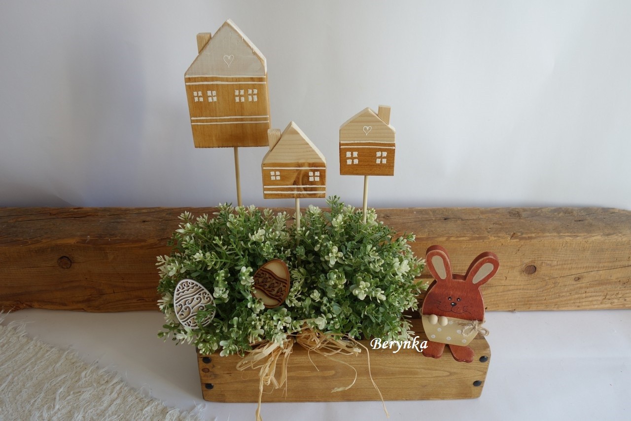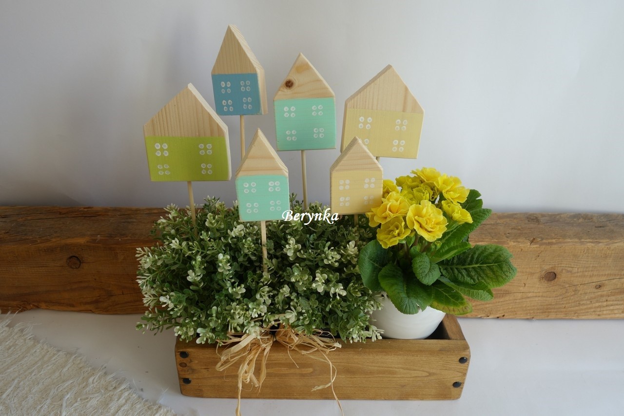 - domeček je ručně vyřezaný ze dřeva, ručně malovaný a zdobený, přelakovaný (lze je snadno otřít)
