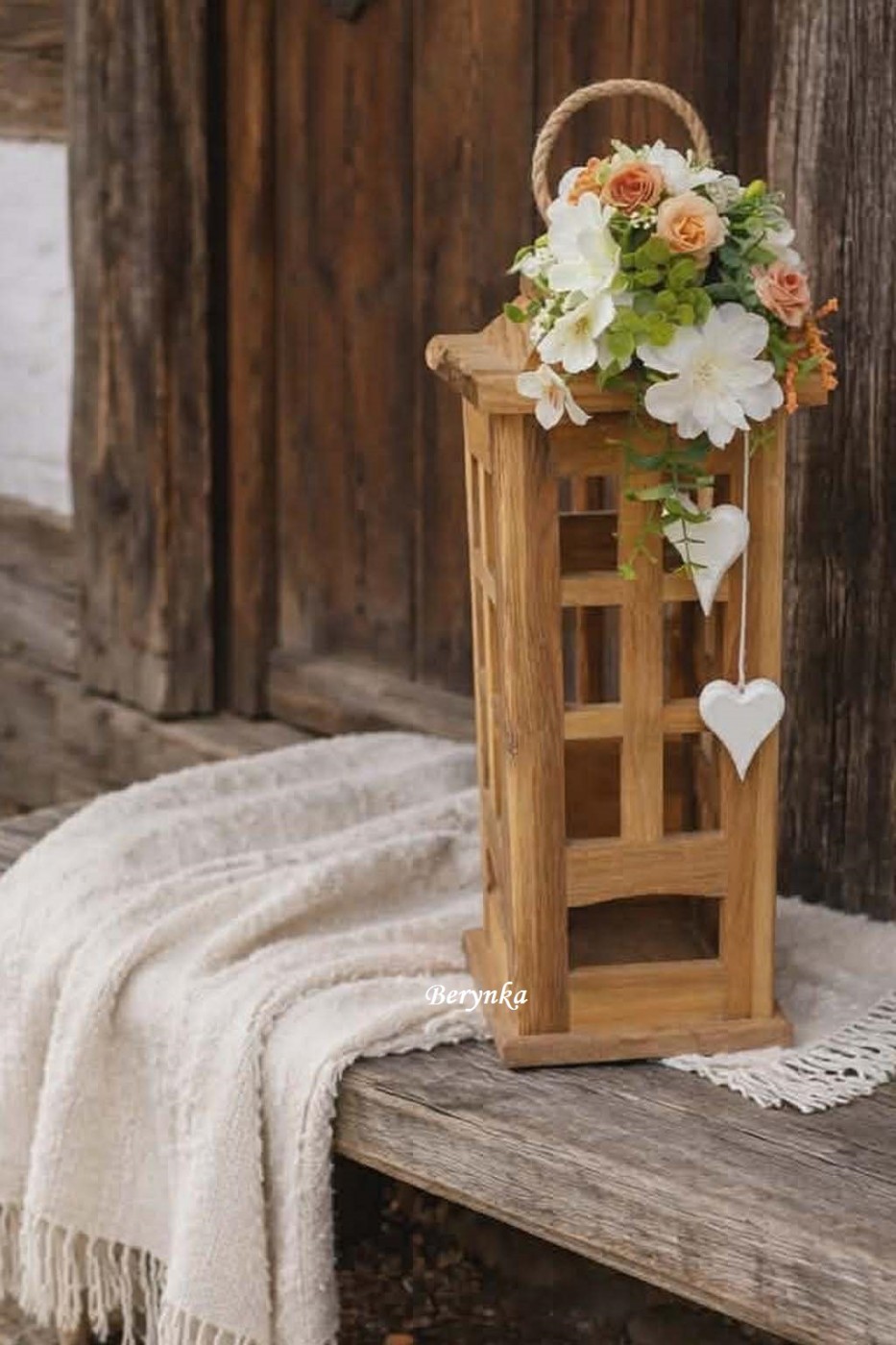 - na lucerně jsou zavěšená dvě dřevěná srdíčka (nebo u vánočnícho provedení můžou být hvězdičky hvězdičky)