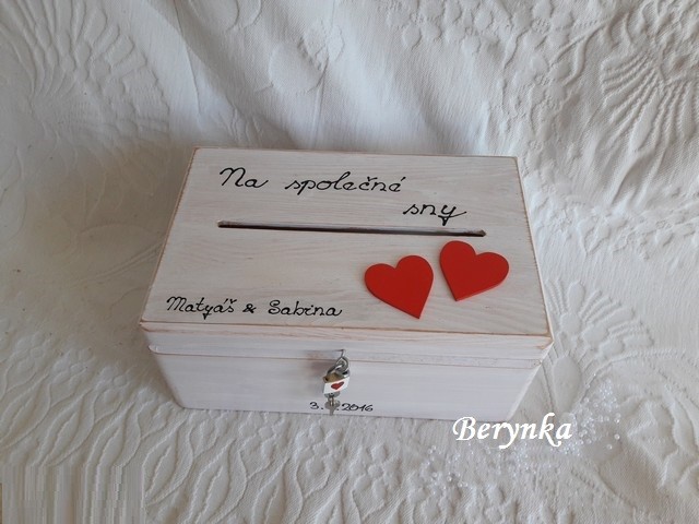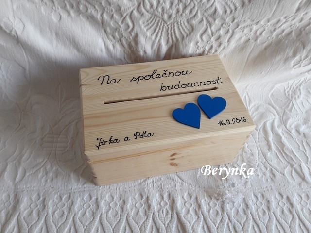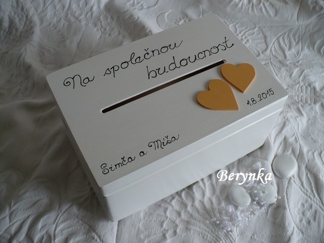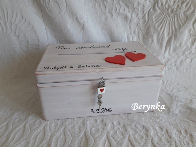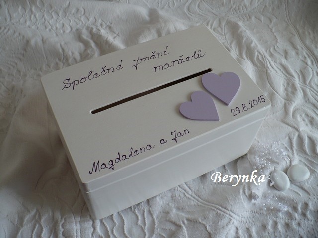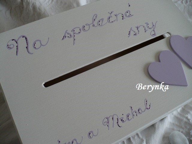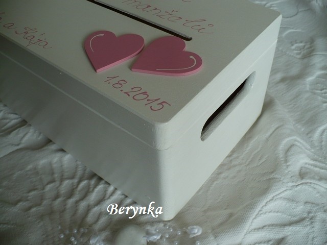 - bedýnka je vhodná na svatbu na přáníčka, obálky … a později na uložení různých svatebních drobností (svatebního oznámení, blahopřání, dekorací, jmenovek, fotek … ) nebo může být použita jako "obal" na svatební dar