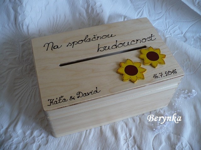 - slunečnice jsou ručně vyřezané z překližky a na krabičce nalepené