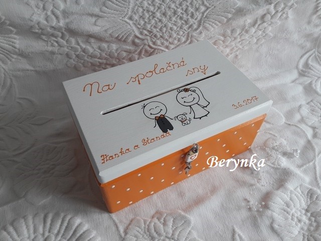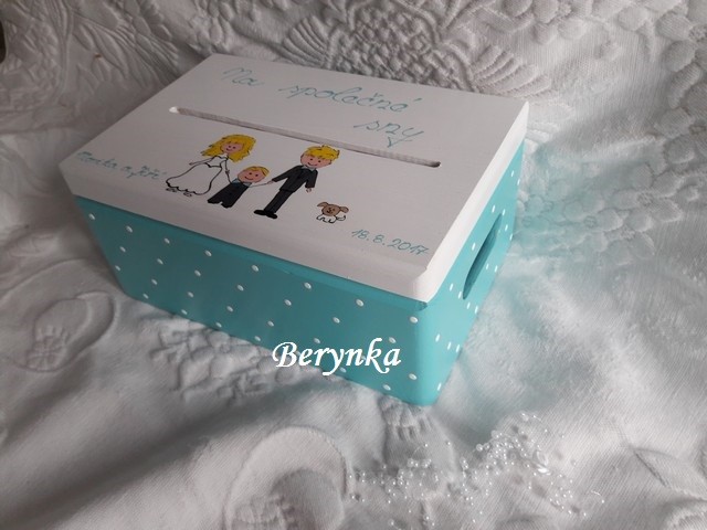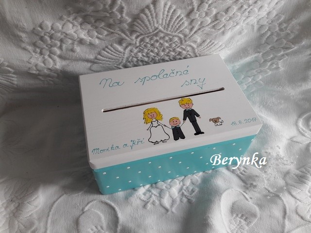 - bedýnka je vhodná na svatbu na přáníčka, obálky … a později na uložení různých svatebních drobností (svatebního oznámení, blahopřání, dekorací, jmenovek, fotek … ) nebo může být použita jako "obal" na svatební dar