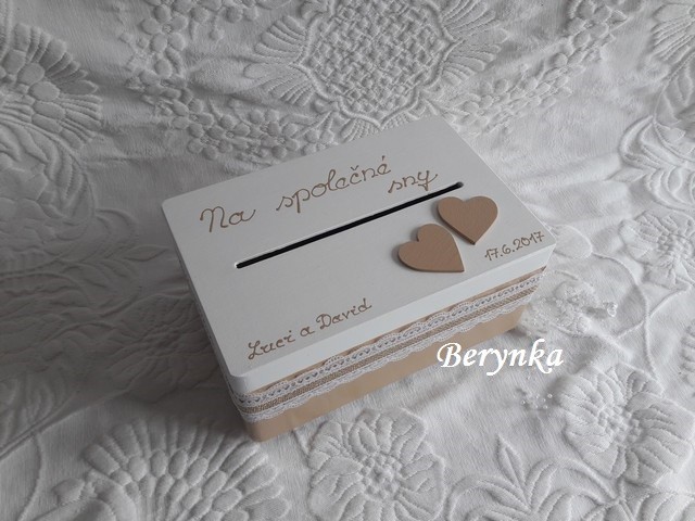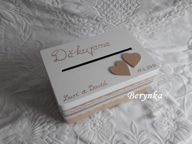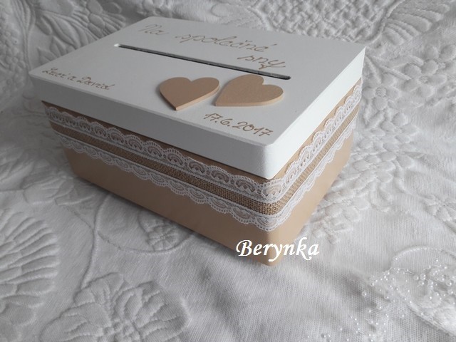 - bedýnka je vhodná na svatbu na přáníčka, obálky … a později na uložení různých svatebních drobností (svatebního oznámení, blahopřání, dekorací, jmenovek, fotek … ) nebo může být použita jako "obal" na svatební dar