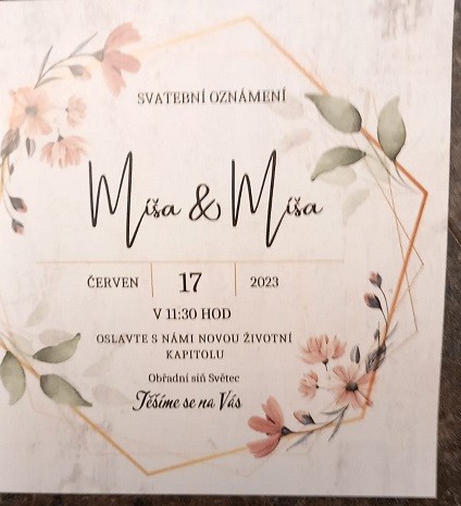 - lze dopsat jakýkoli text - jména novomanželů, datum svatby, věnování …