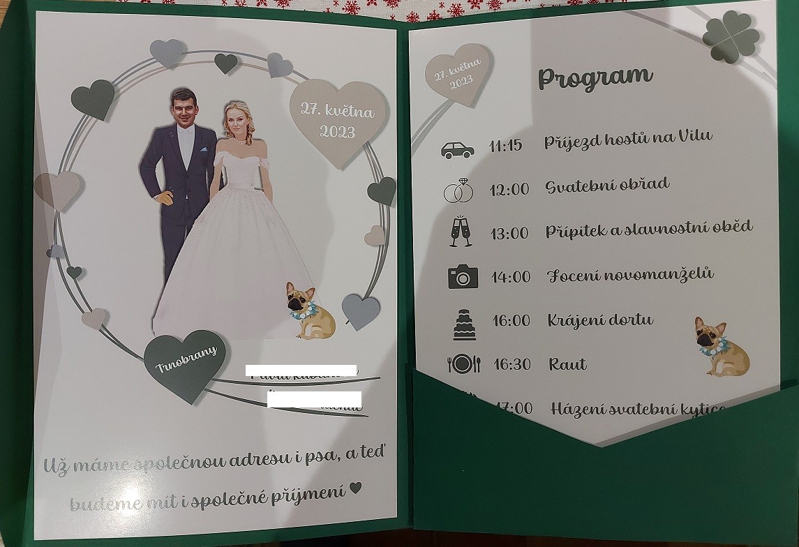 - lze dopsat jakýkoli text - jména novomanželů, datum svatby, věnování …