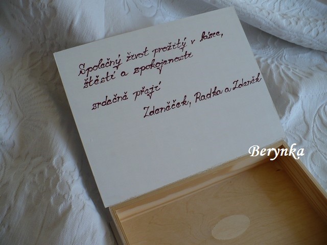 - vnitřek je ponechán v přírodním stavu - je možné víko zevnitř natřít a napsat věnování .. + 90,- Kč