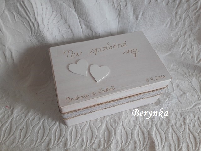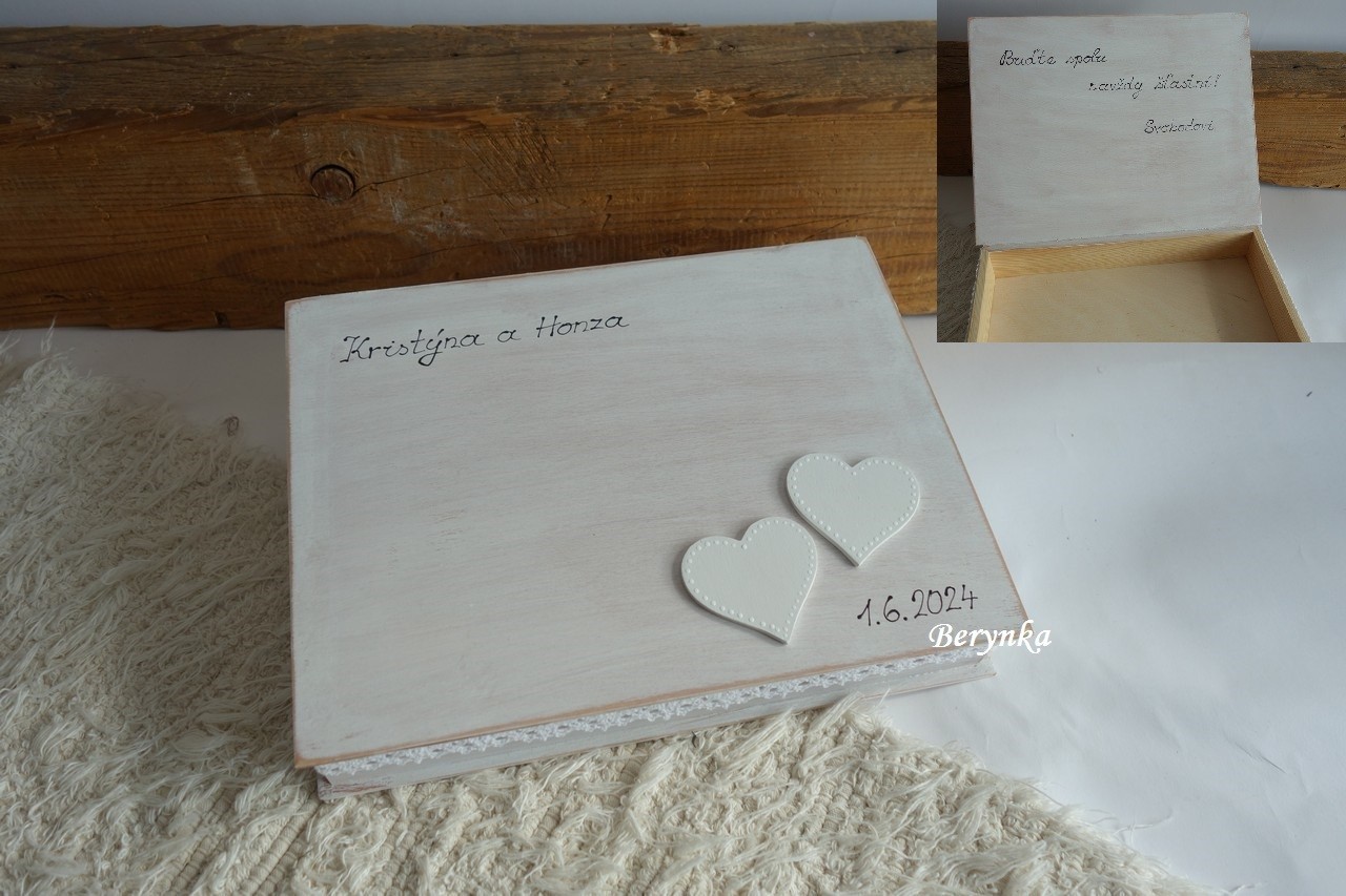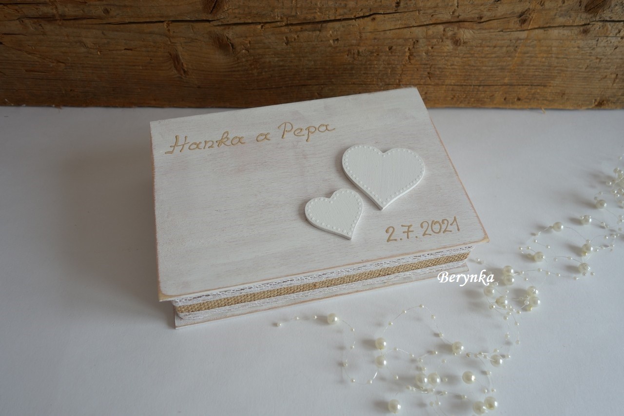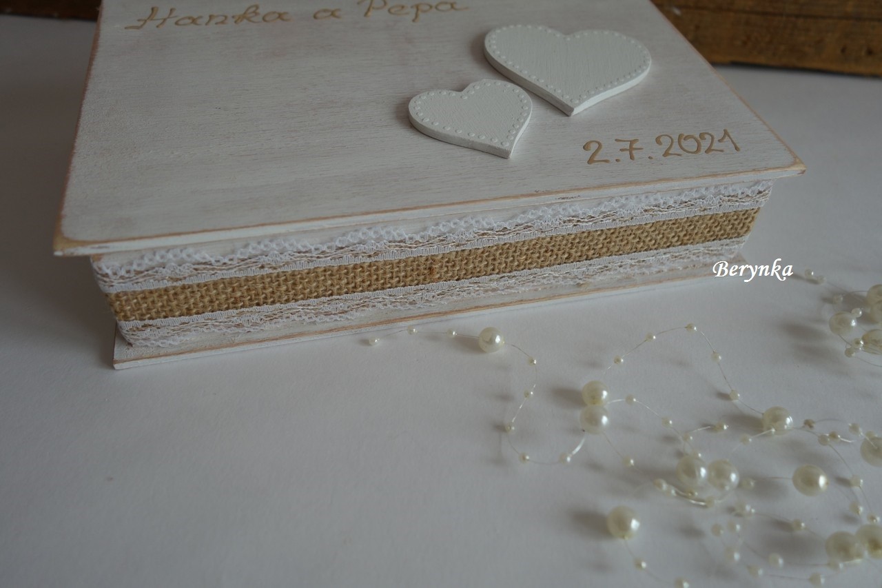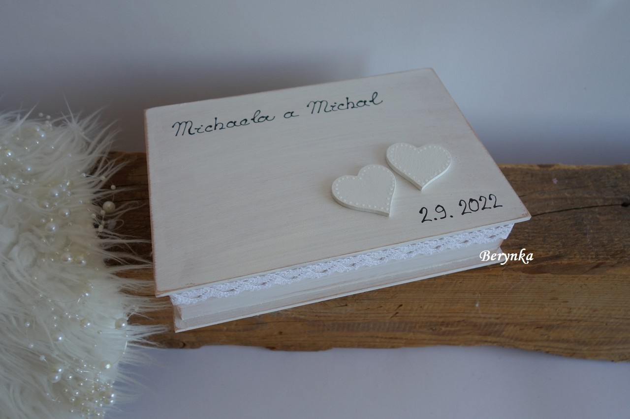 Svatební krabička vhodná na předání finančního daru a později na uložení svatebních blahopřání