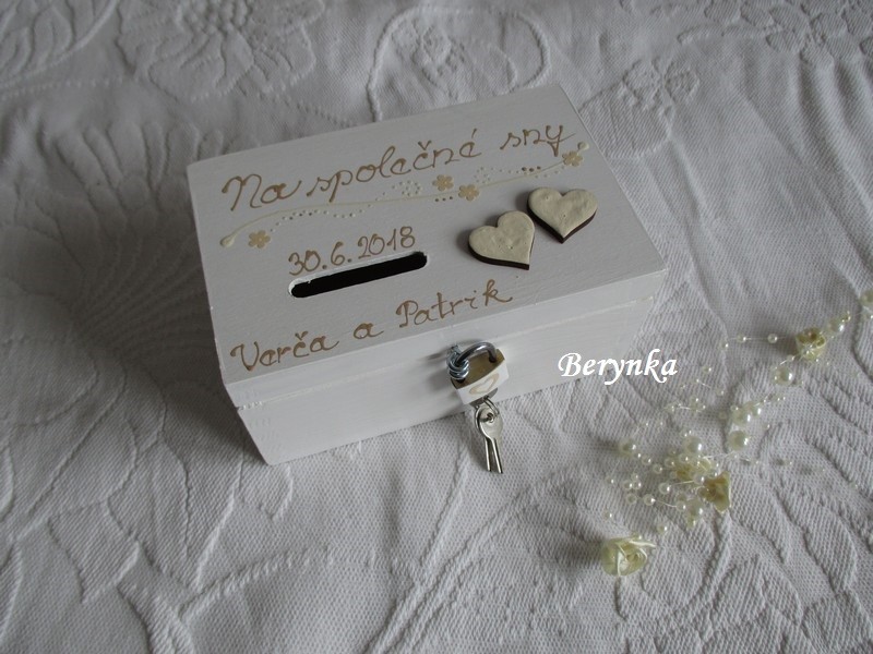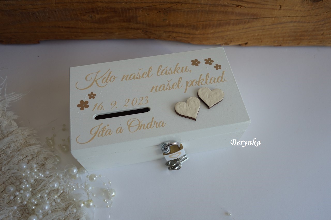 Dřevěná pokladnička se srdíčky a se zámečkem