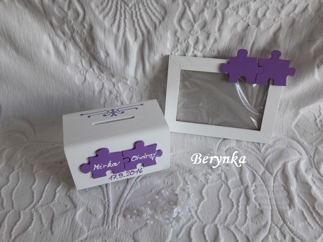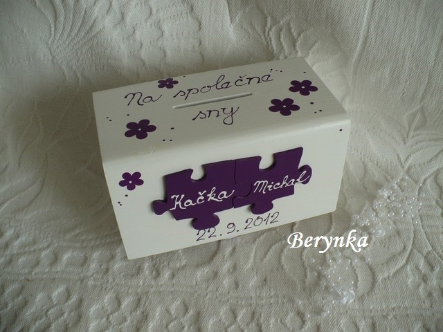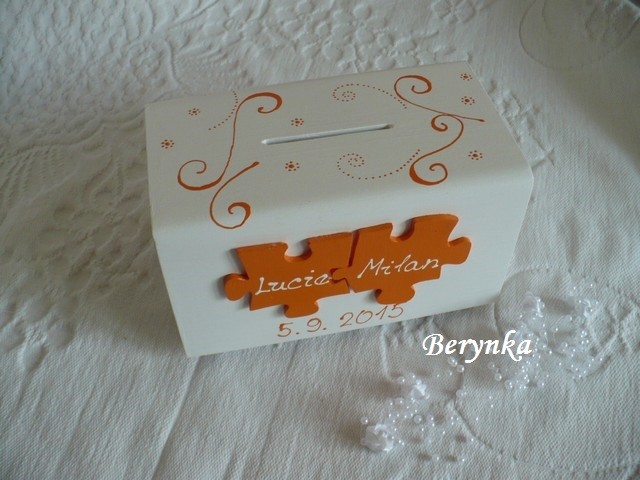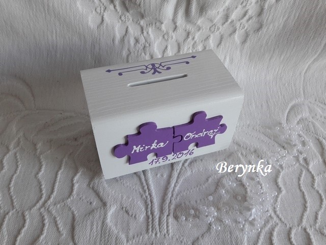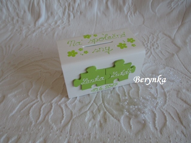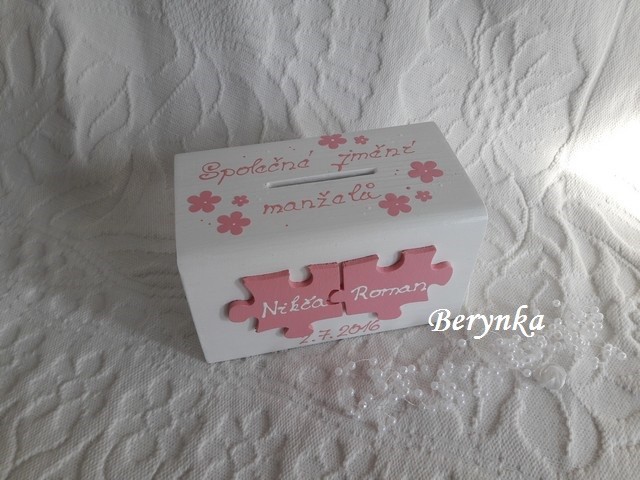 Svatební pokladnička s puzzle a kytičkami