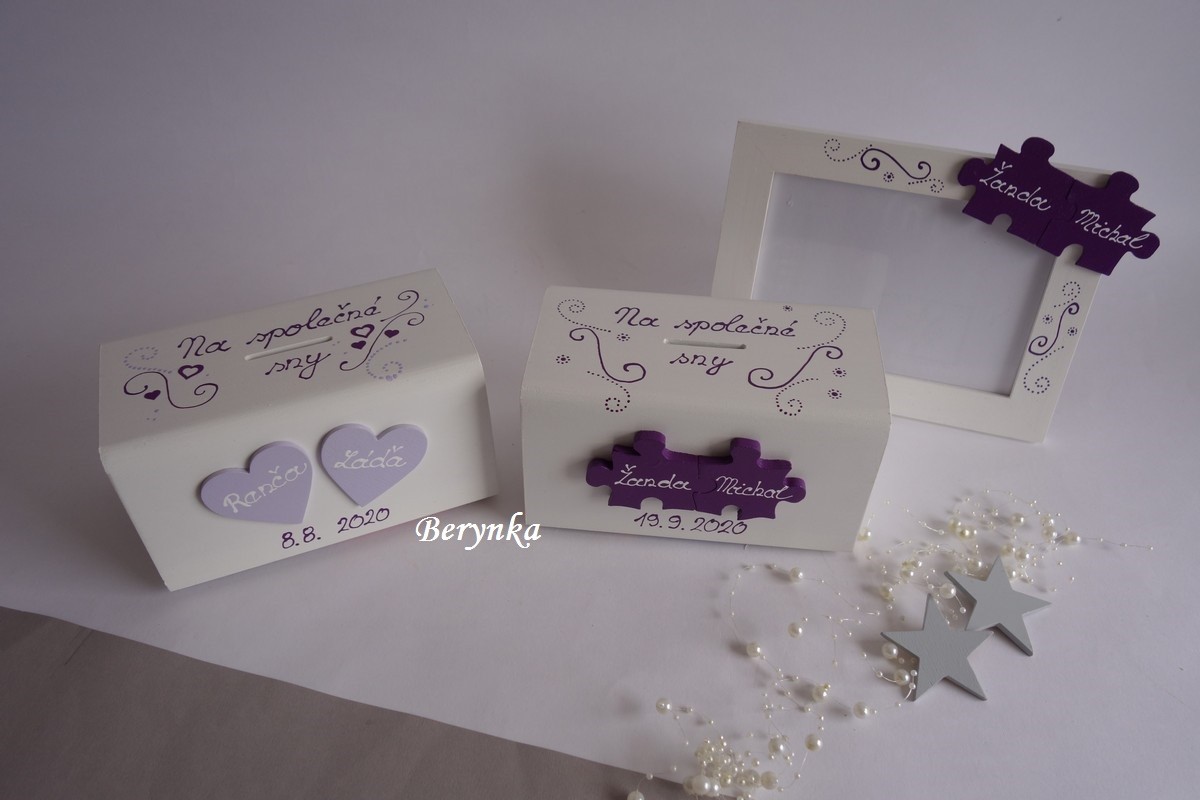 Svatební pokladnička s puzzle a spirálkami