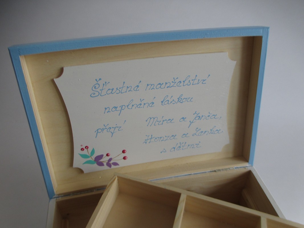 - také je možné přilepit věnování na samostatné destičce dovnitř na víko + 100,- Kč