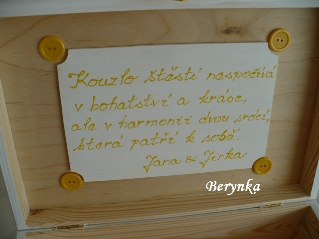 - na truhličku je možné přidělat zámeček + 50,- Kč nebo přilepit srdíčko jako "otevírání" + 30,- Kč