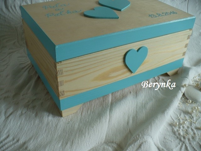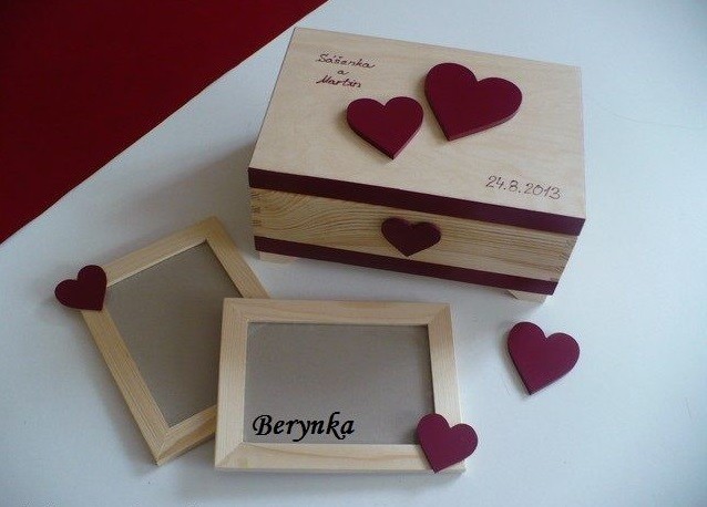 - na truhličku je možné přidělat zámeček + 50,- Kč nebo přilepit srdíčko jako "otevírání" + 30,- Kč