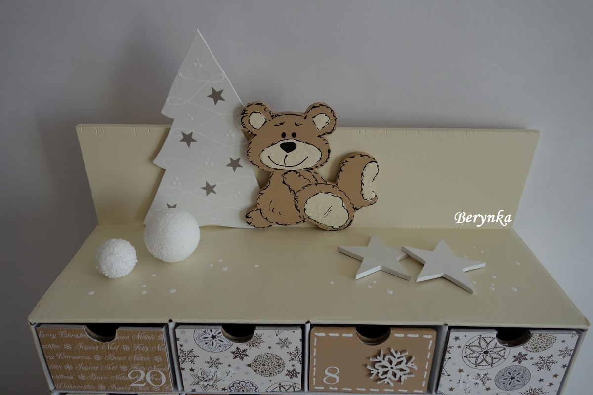 Adventní kalendář s dřevěným medvídkem