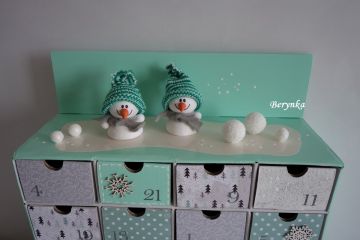 Adventní kalendář mátovo-stříbrný se sněhuláky