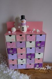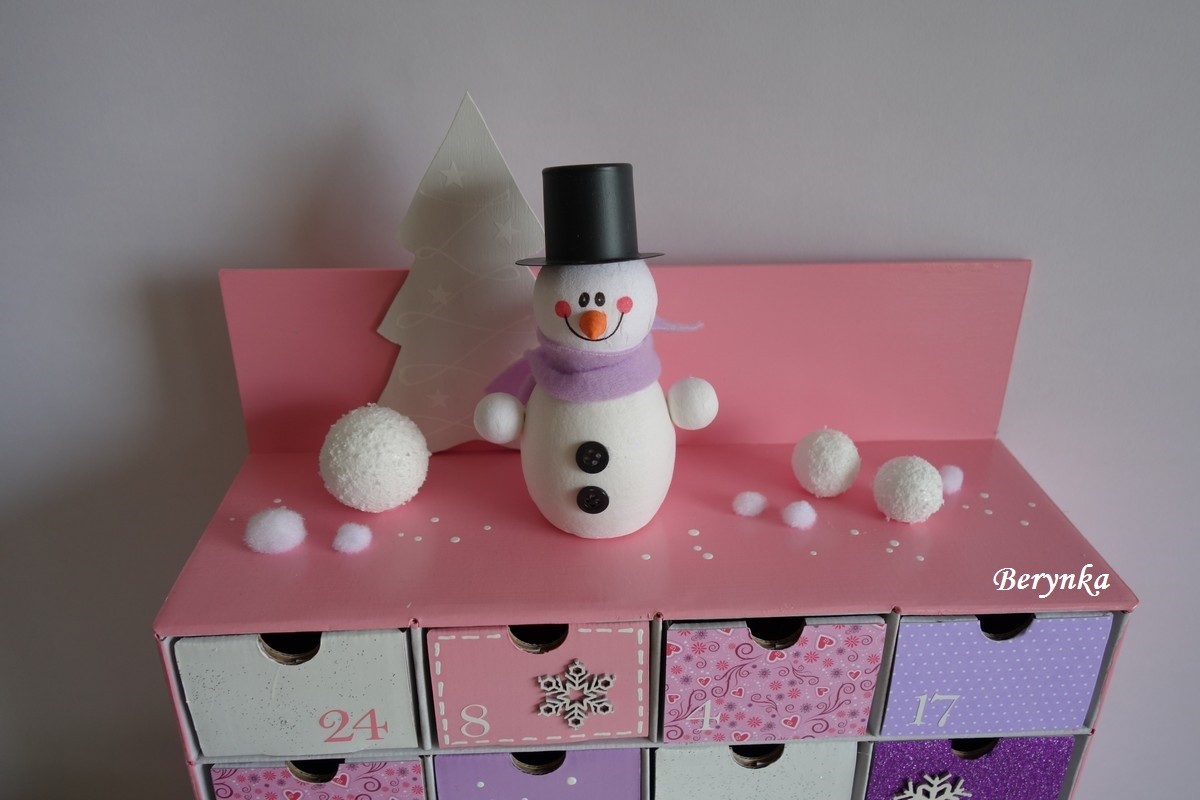 Adventní kalendář růžovo-fialový se sněhuláčkem