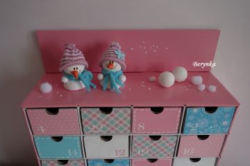 Adventní kalendář růžovo-tyrkysový se sněhuláčky