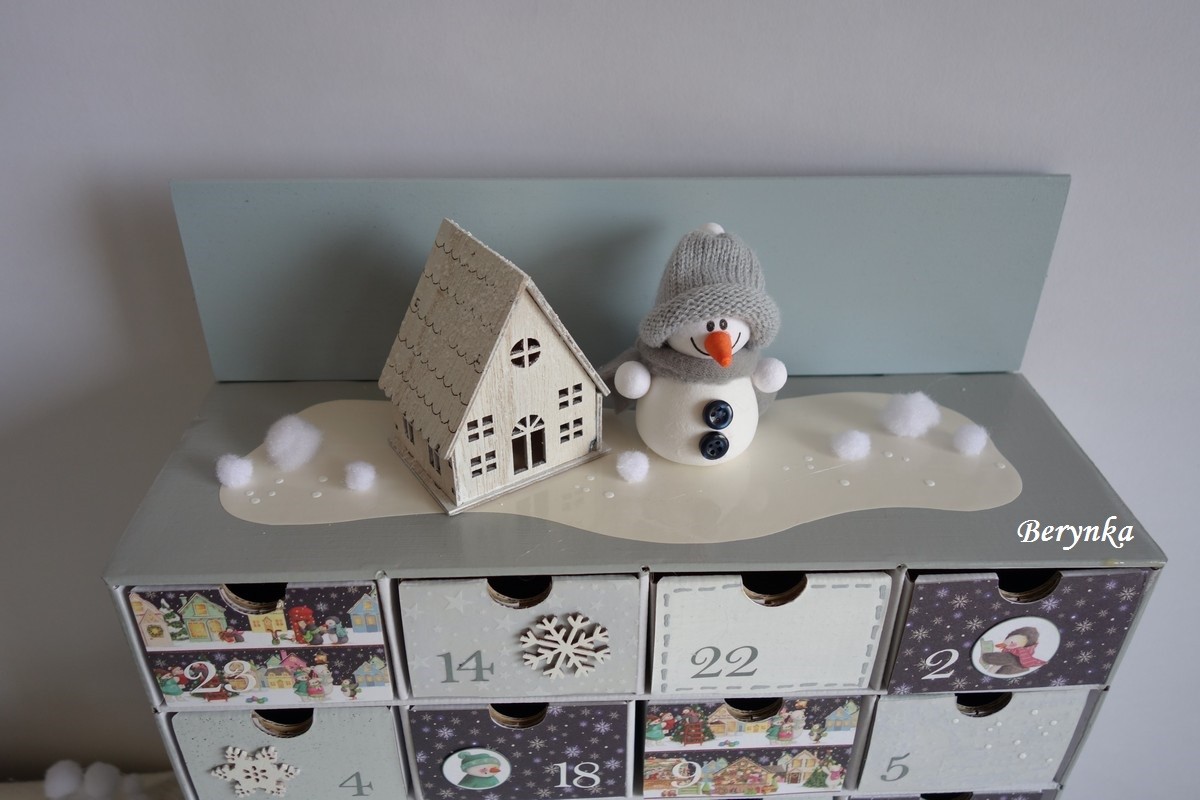 Adventní kalendář se sněhuláčkem a chaloupkou