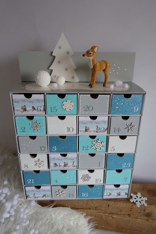 Adventní kalendář šedo-tyrkysový s kolouškem