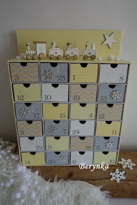Adventní kalendáře nevyrábím na objednávku, připravuji je dopředu - po domluvě zašlu aktuální nabídku.