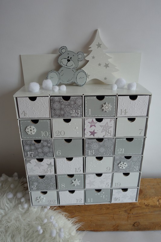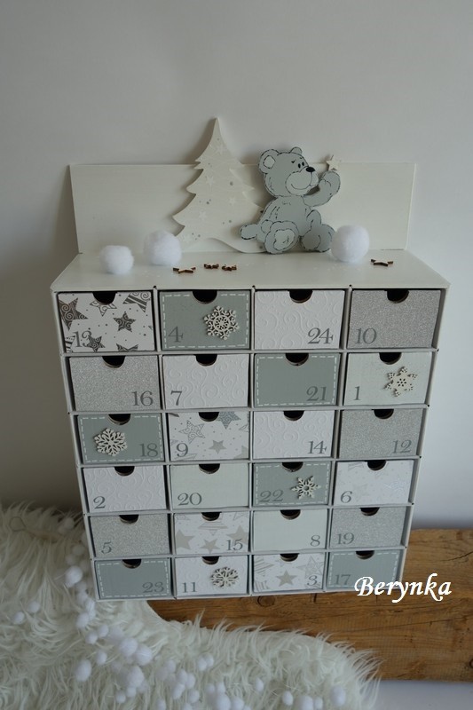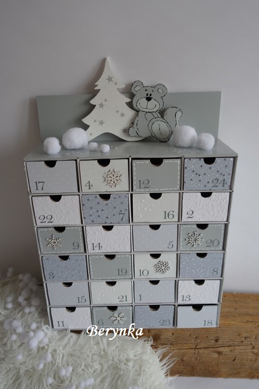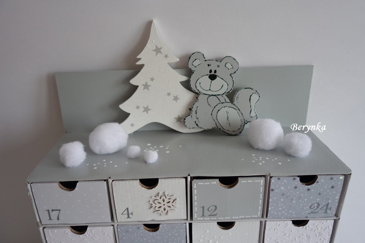 Adventní kalendář *bílo-šedý* s medvídkem - různá provedení