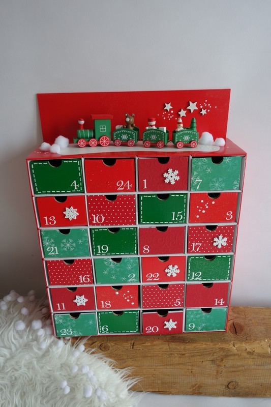 Adventní kalendář *červeno-zelený* - s mašinkou - různá provedení