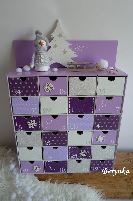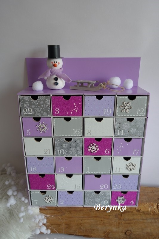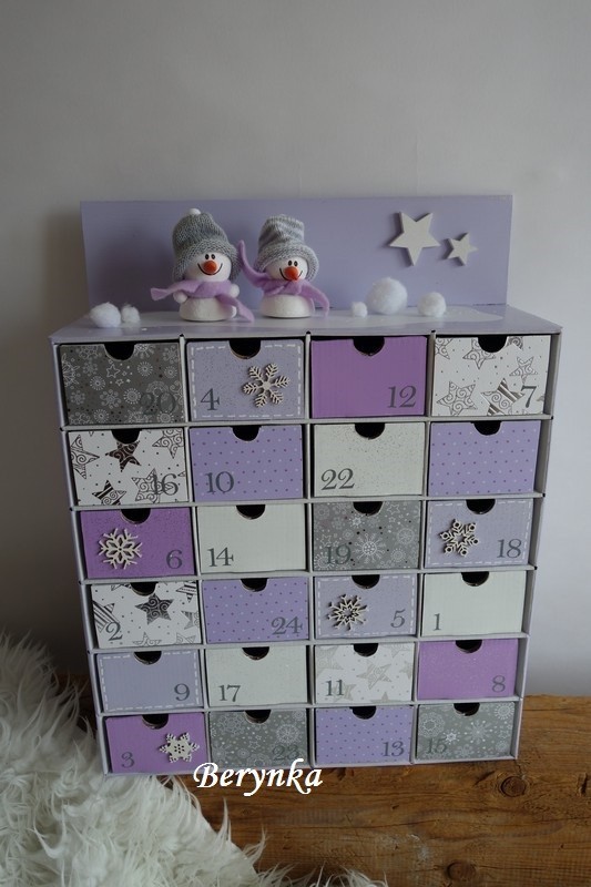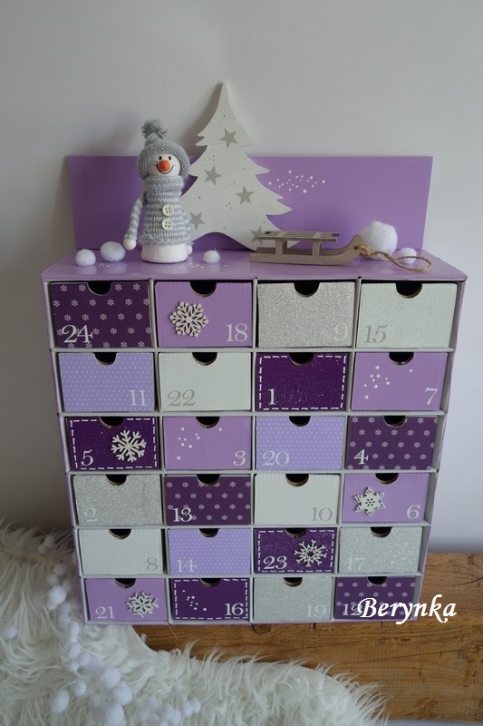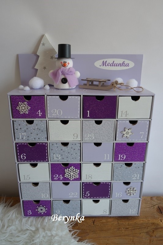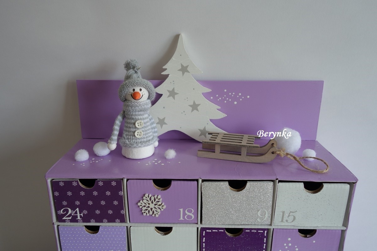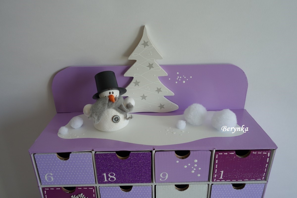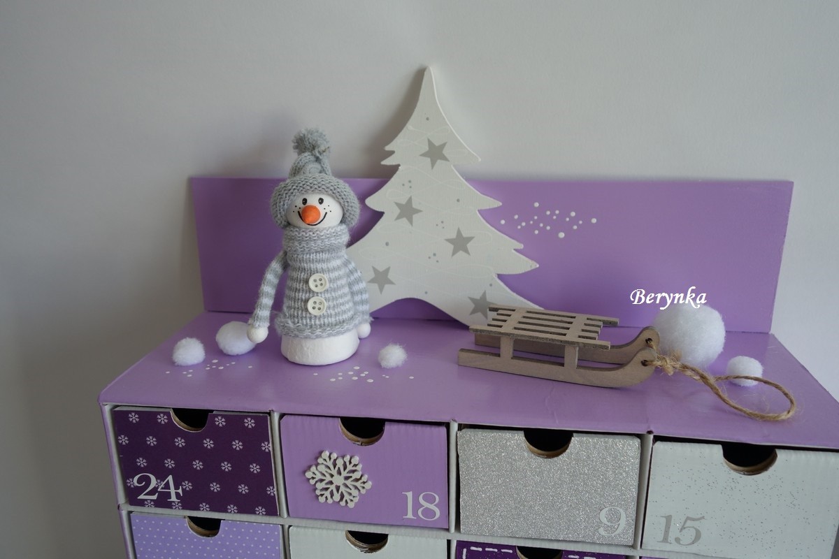 Adventní kalendář *fialovo-bílý* se sněhulákem - různá provedení