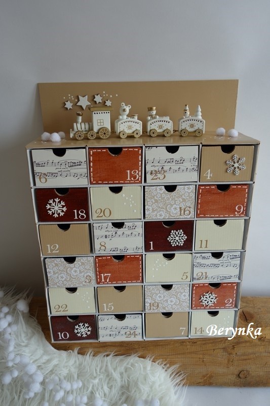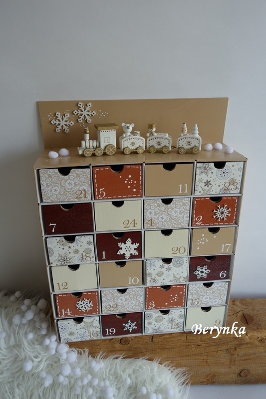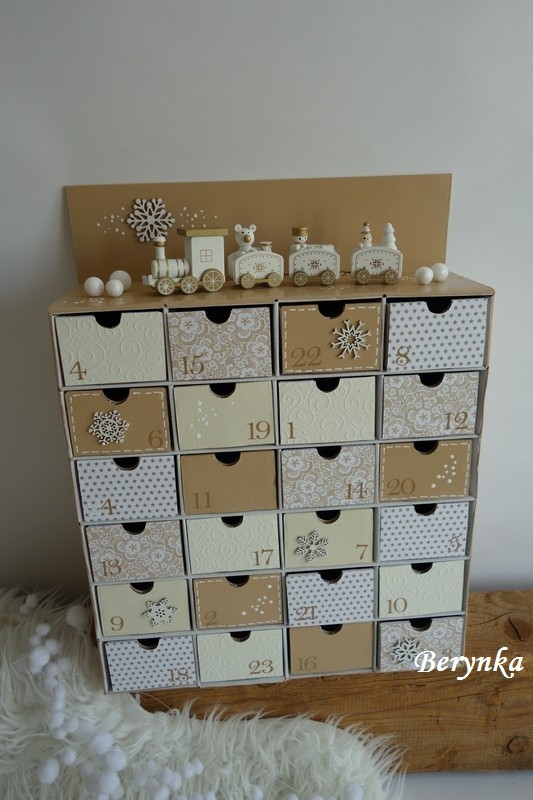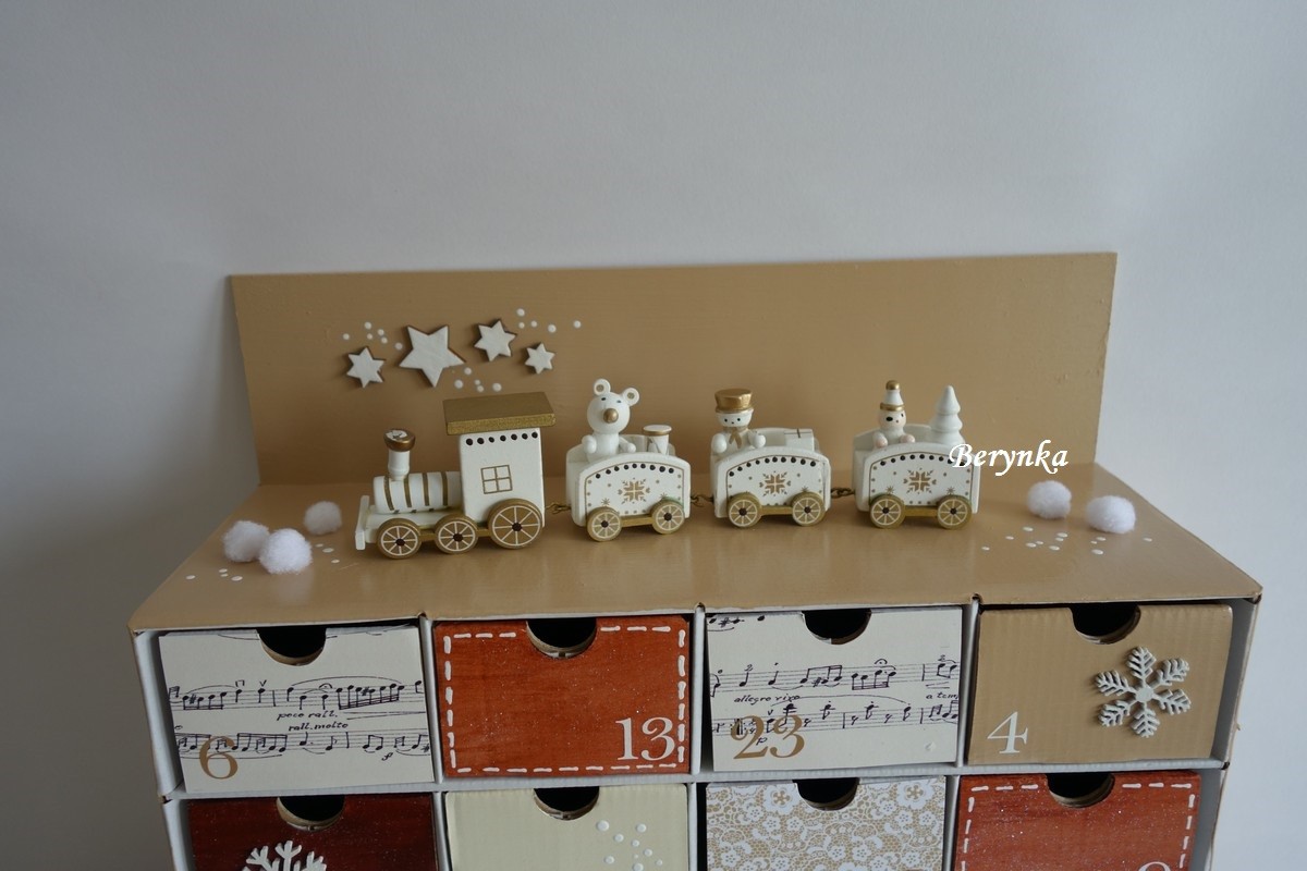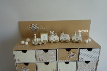 Adventní kalendář *krémový* s mašinkou - různá provedení