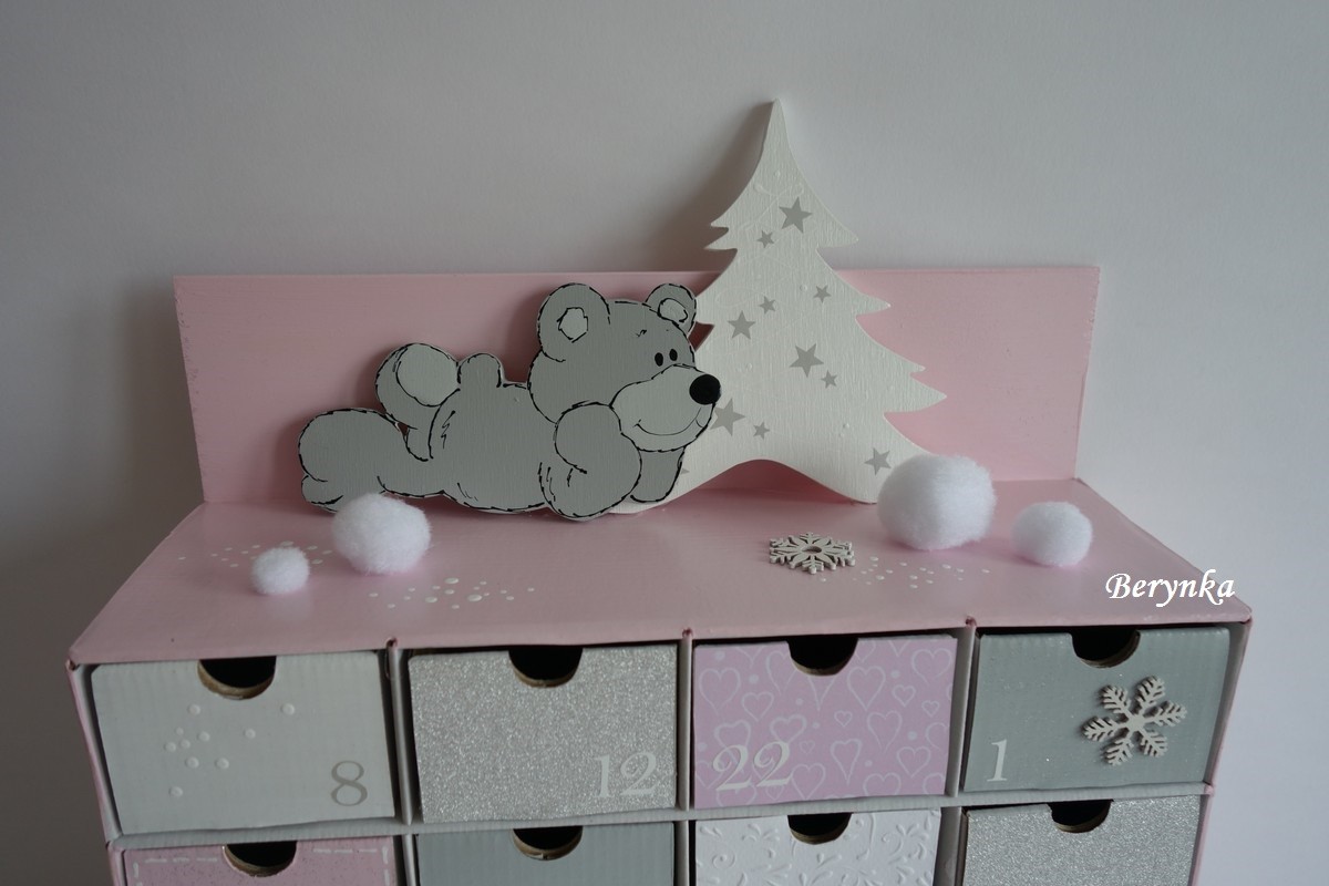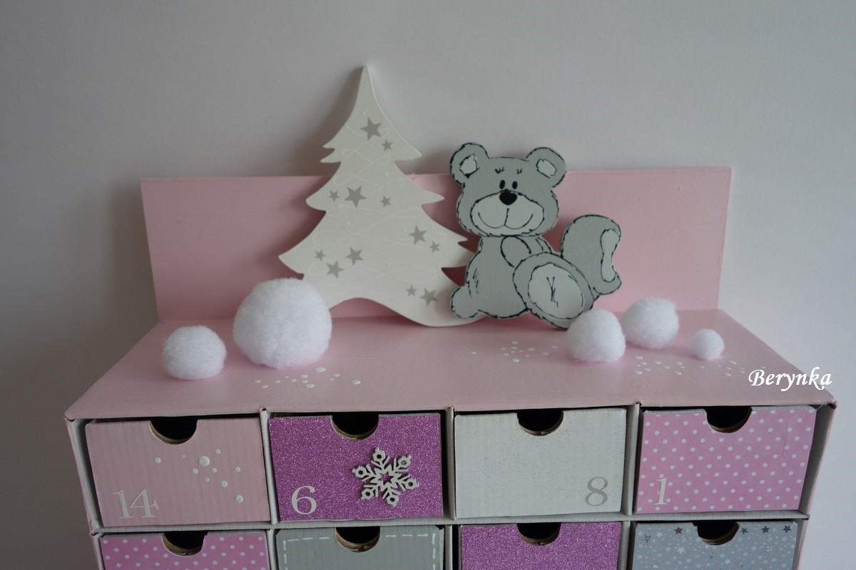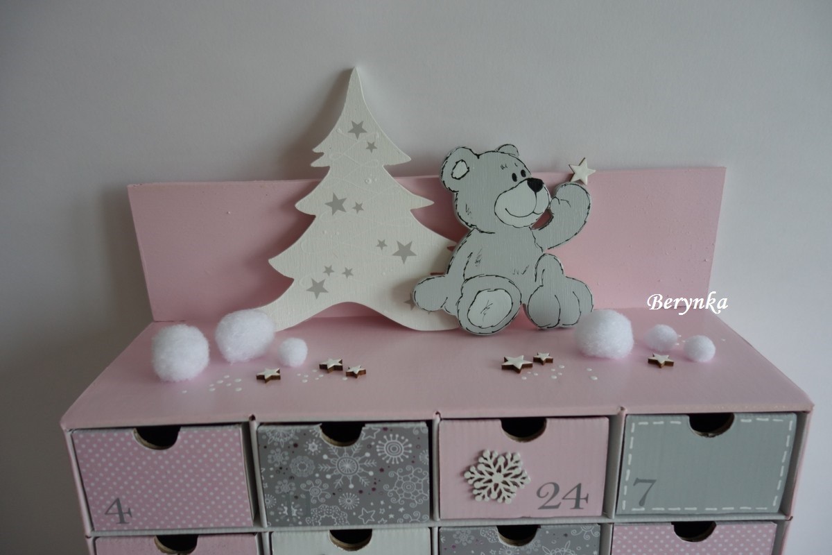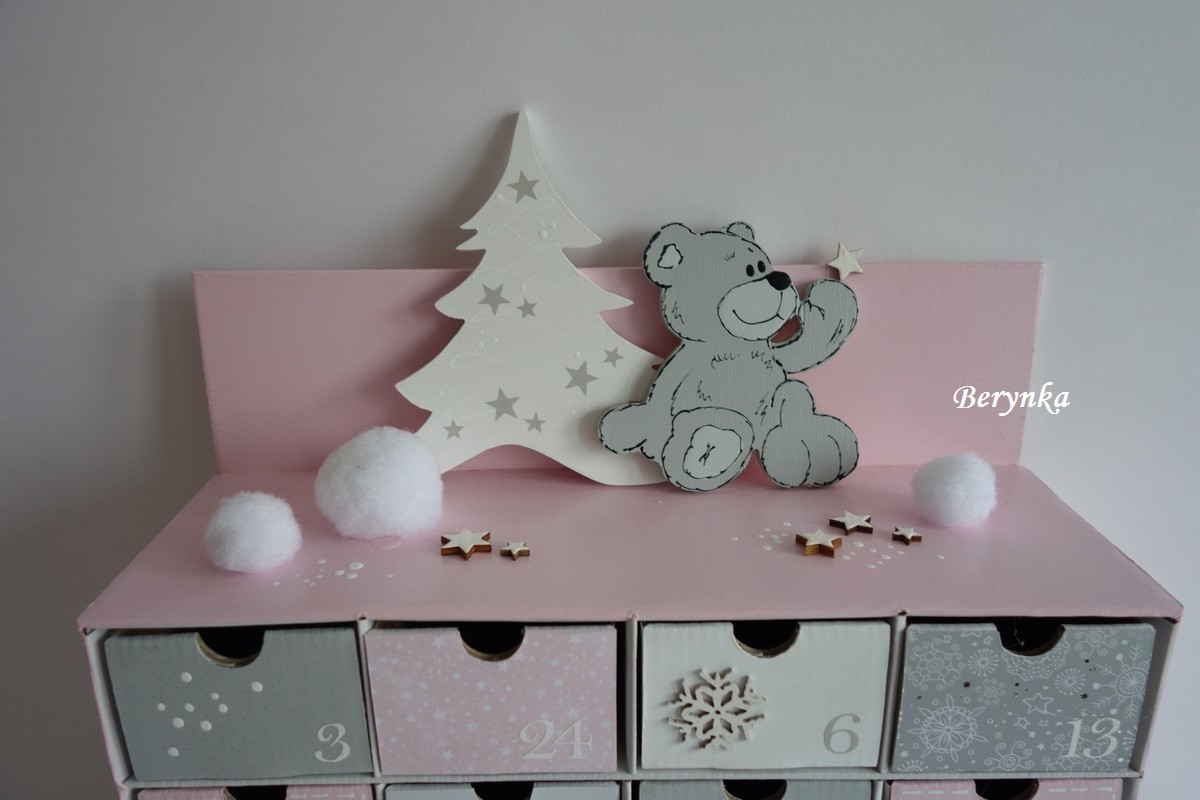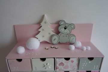 Adventní kalendář *pudrově růžový* s medvídkem - různá provedení