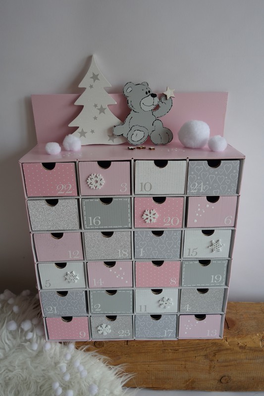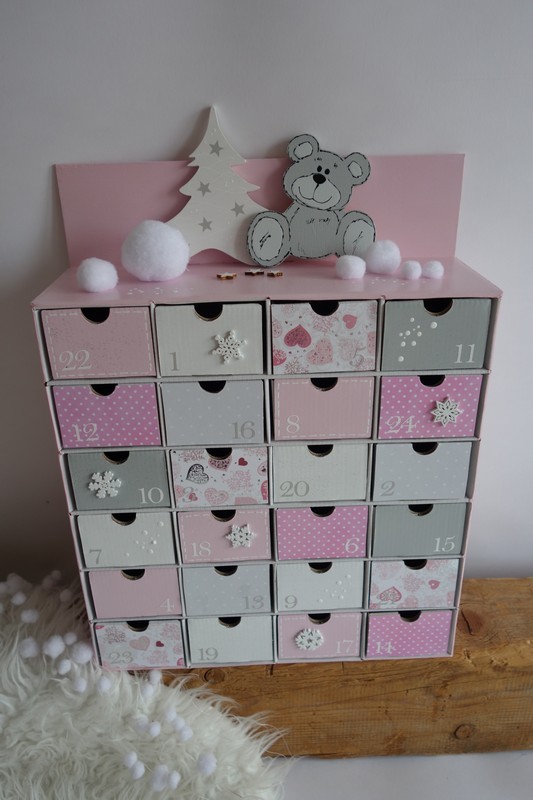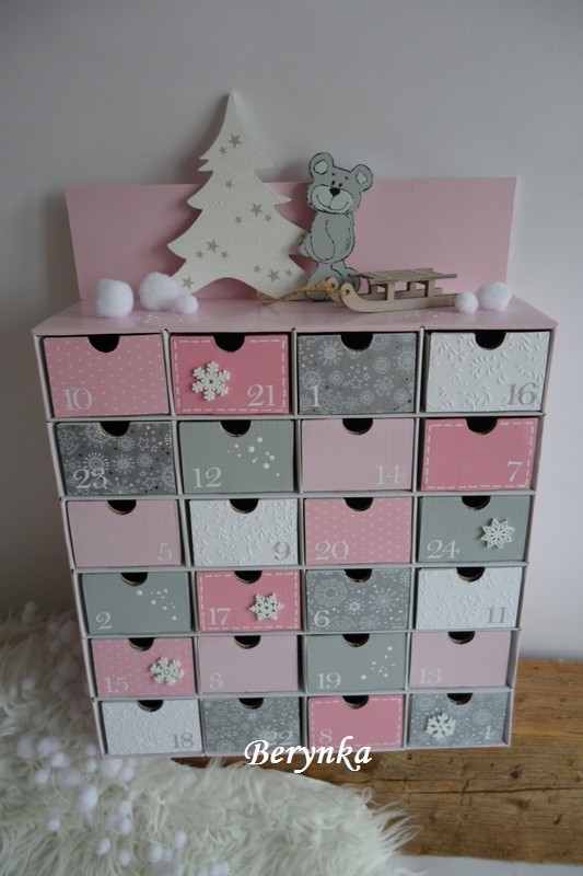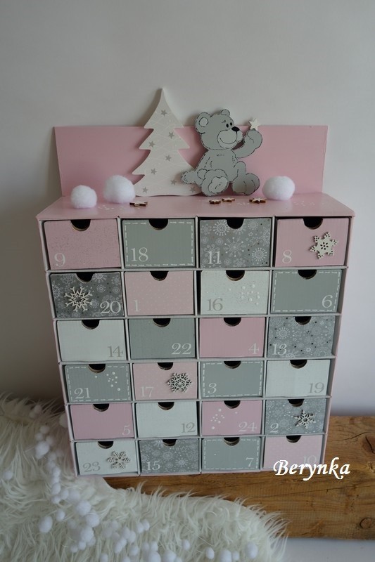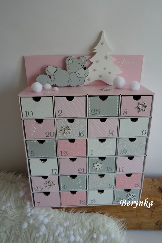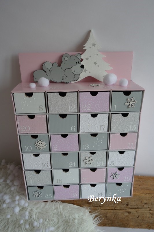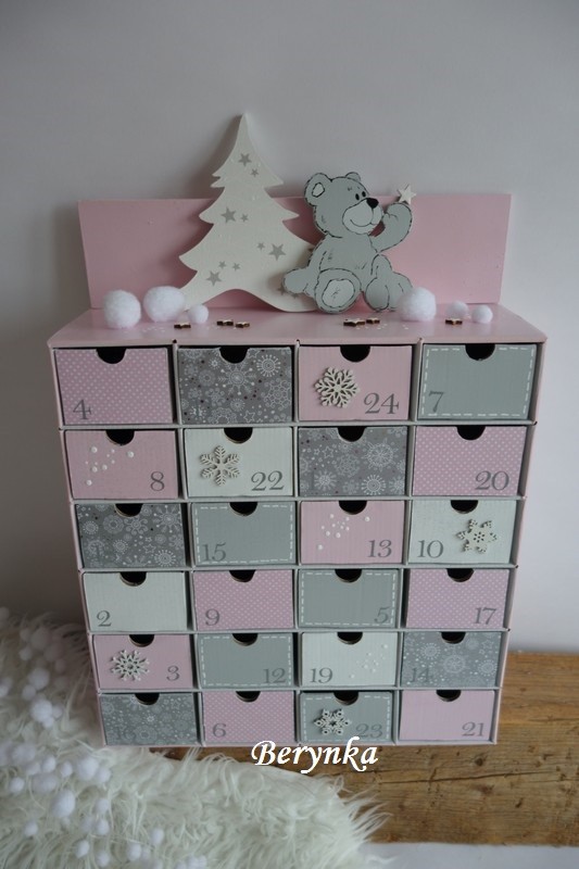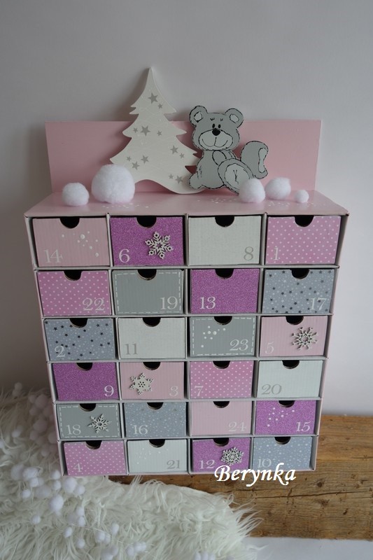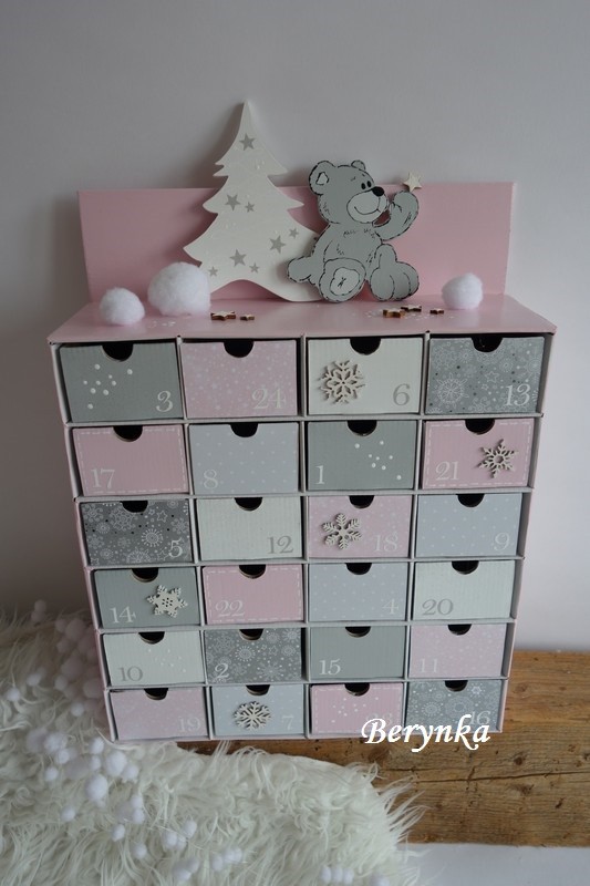 Adventní kalendář *pudrově růžový* s medvídkem - různá provedení