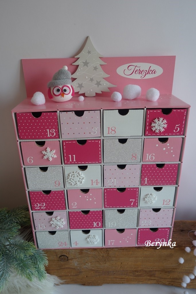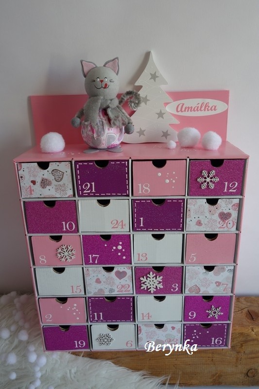 Adventní kalendář *růžový* s kočičkou - různá provedení