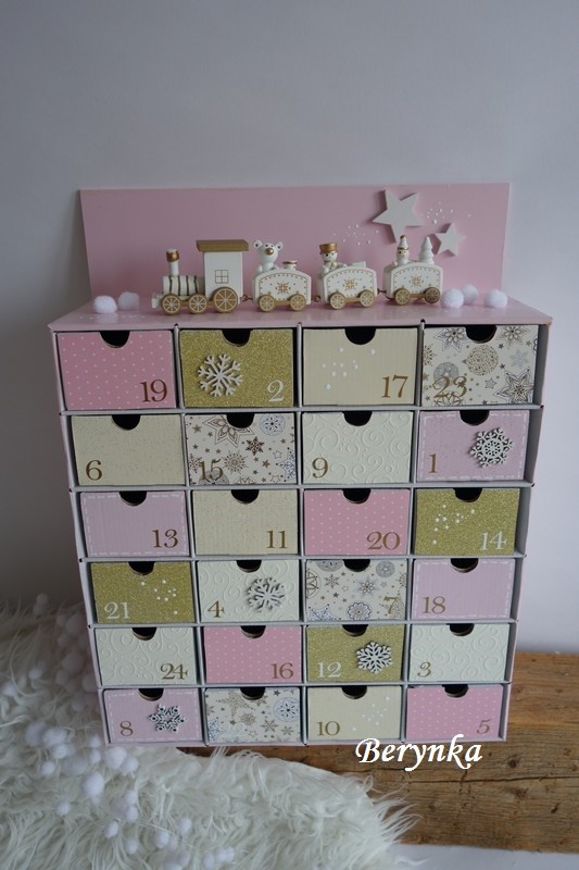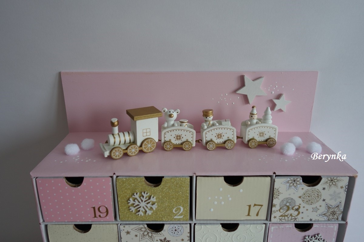 Adventní kalendář *růžovo-zlatý* - s mašinkou - různá provedení